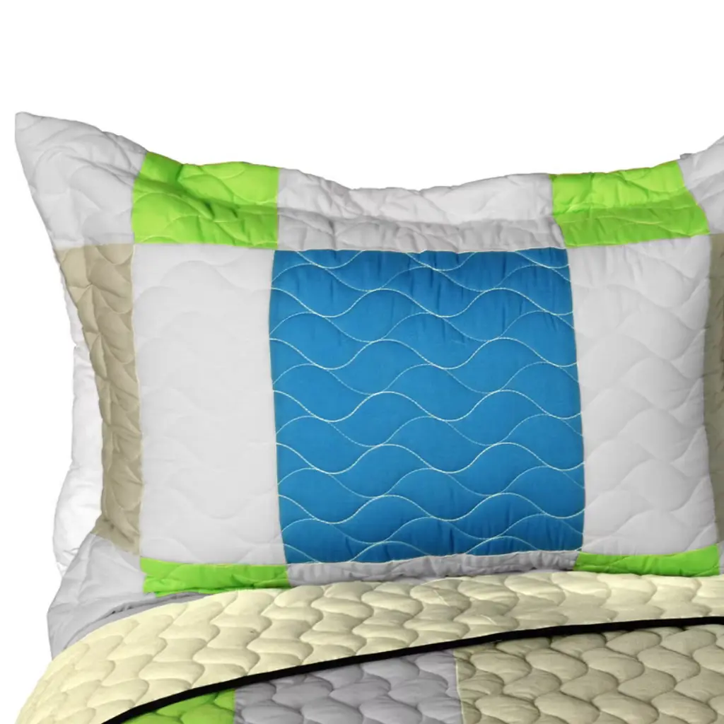 Slickblue Full/queen, Patchwork Quilt Set, Machine Washable, Bedding, Geometric, 90.5"x90.5", Green, 3Pc