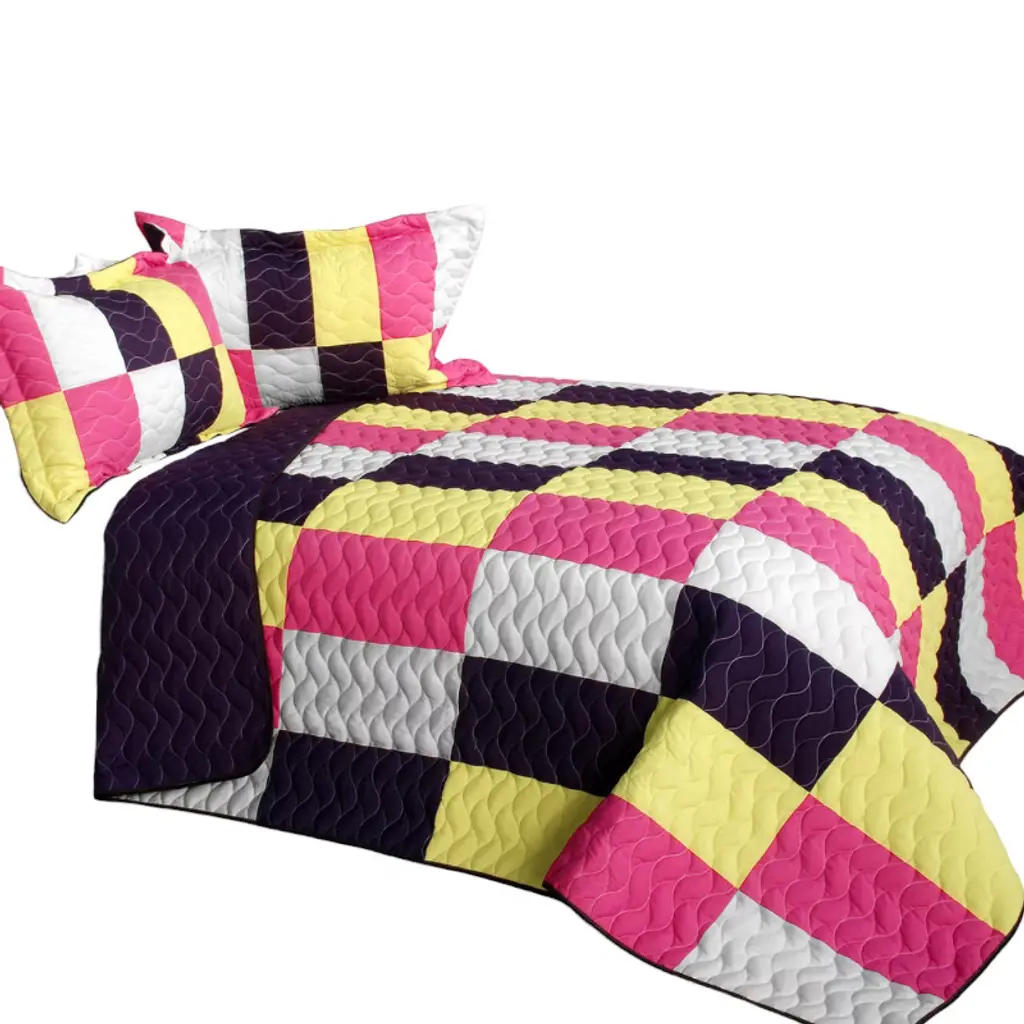 Slickblue Full/queen Quilt Set, Intricate Hand-stitching, Tc Fabric, Bedding, Geometric Design, Multi, 3 Piece