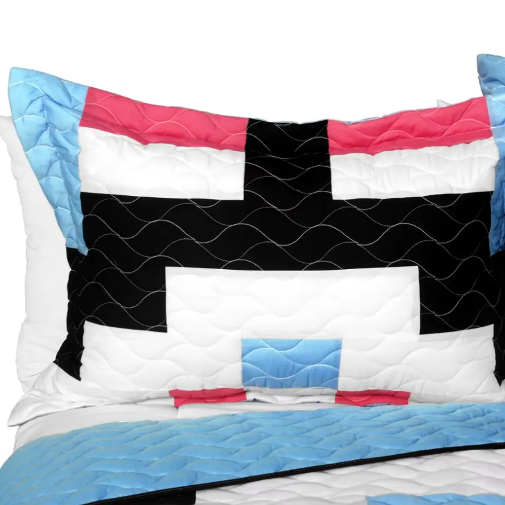 Slickblue Full/queen Size, 3Pc Patchwork Quilt Set, Tc Fabric, Vermicelli Quilted, Bedding, Geometric, White, 3Pc