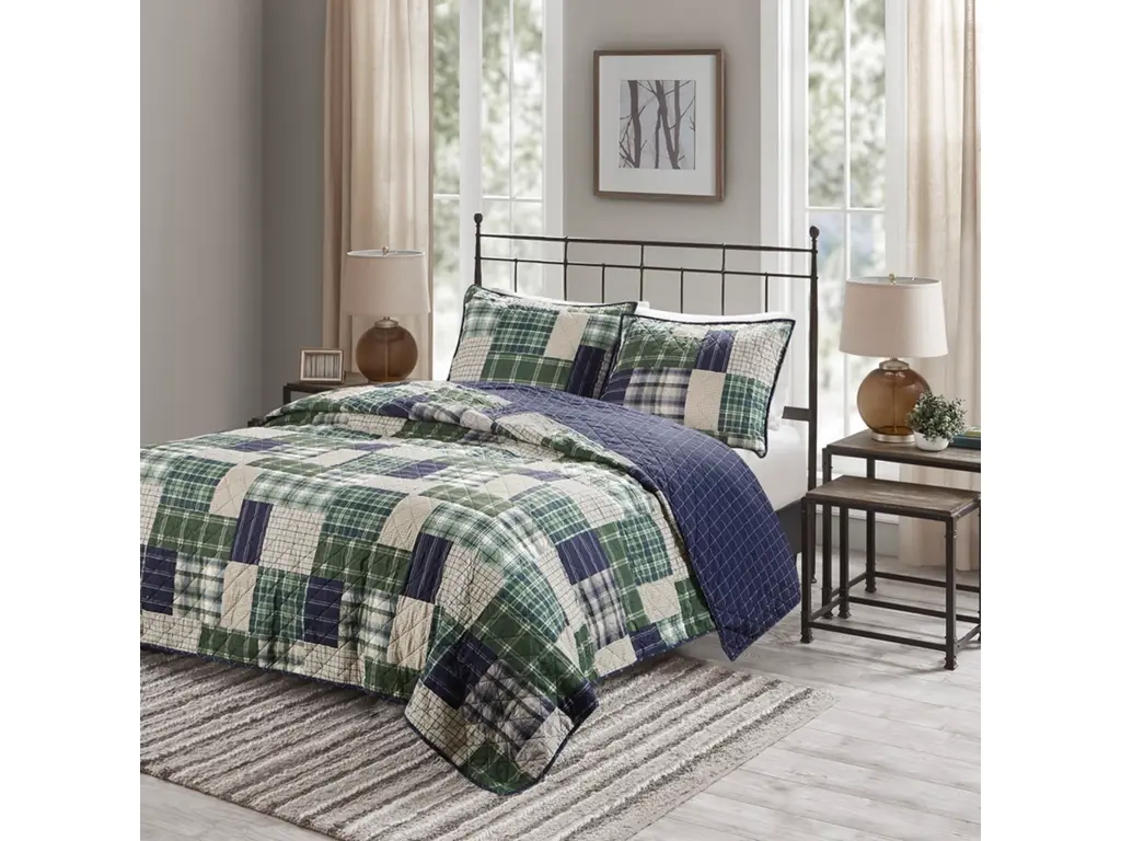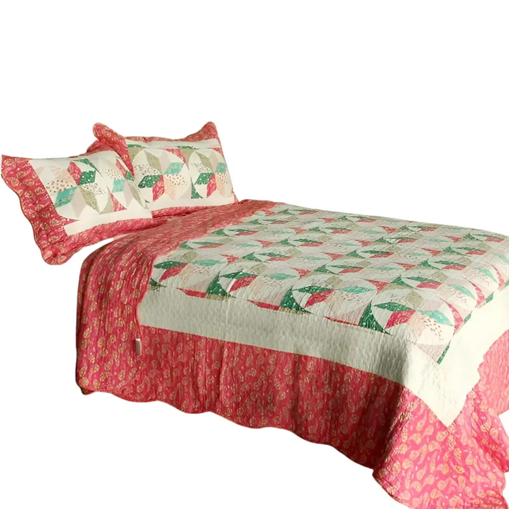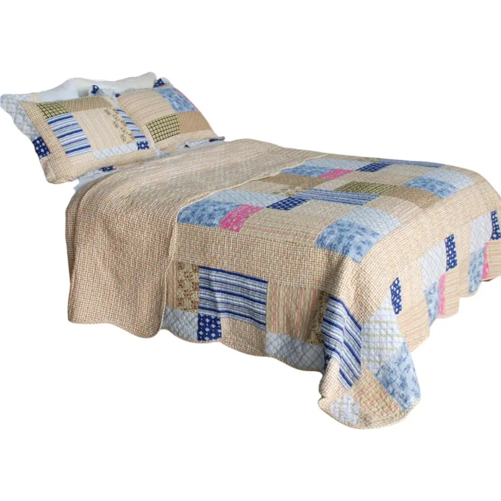 Refresh your space with this 3-piece quilt set featuring detailed vermicelli quilting and patchwork styling. The Full/Queen size quilt and two matching shams are crafted with a soft cotton shell and fill, offering a cozy and lightweight layer for year-round use. The quilt is reversible, giving you more than one way to style your bed. Pre-washed and pre-shrunk, this set is easy to care for—machine wash cold, tumble dry low. Ideal for bedrooms or guest rooms, the pattern and stitching give your bedding a finished look without extra effort.