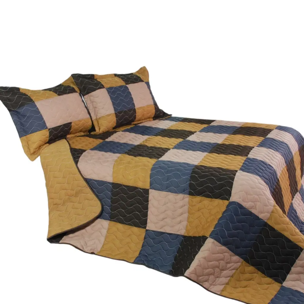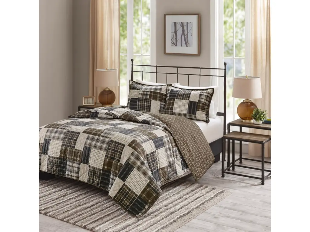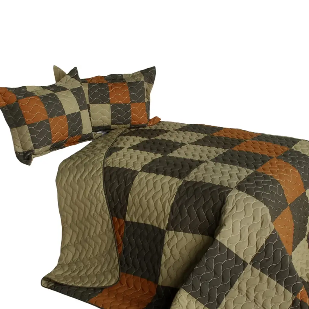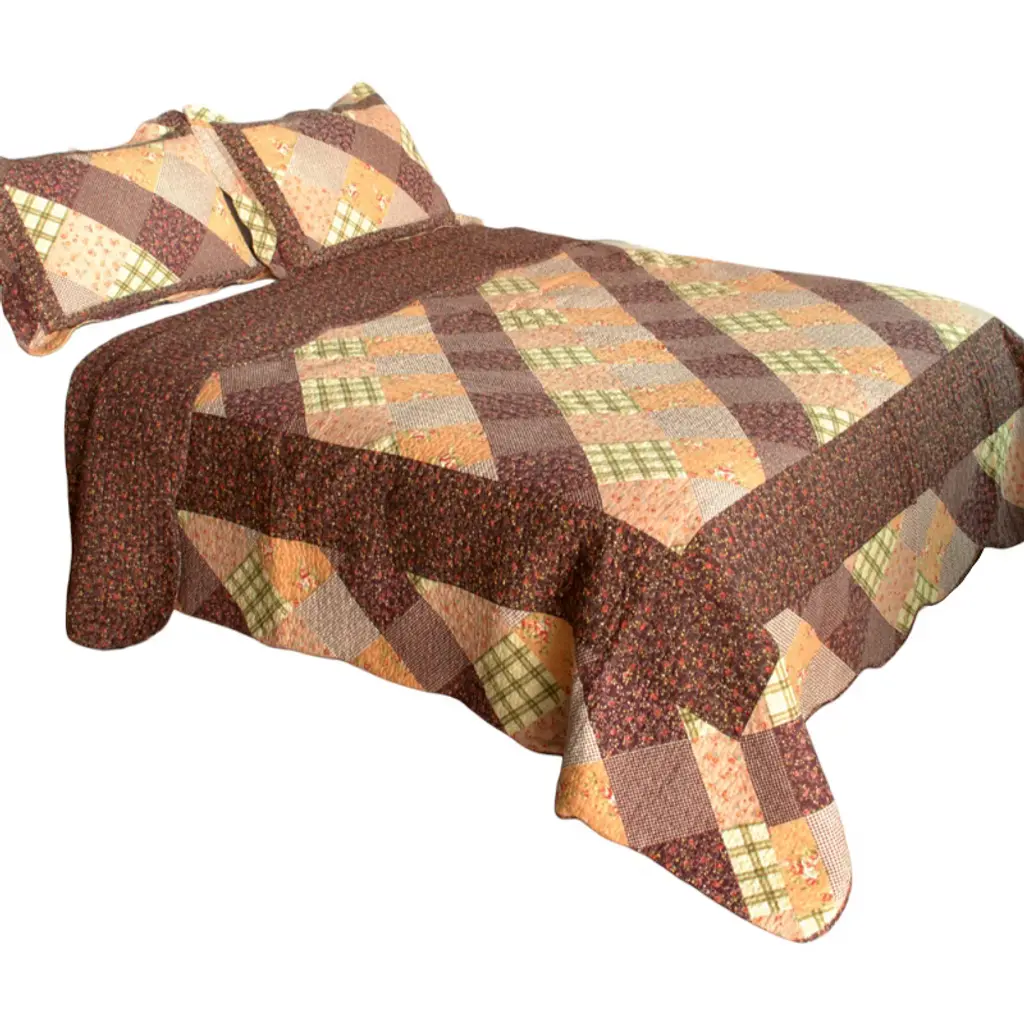 Slickblue Full/queen Size Bedding, Cotton Quilted Texture, Quilt Set, Patchwork Look, 90x98, Brown, 3Pc