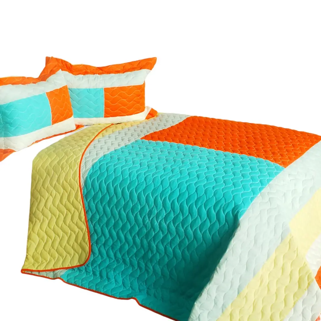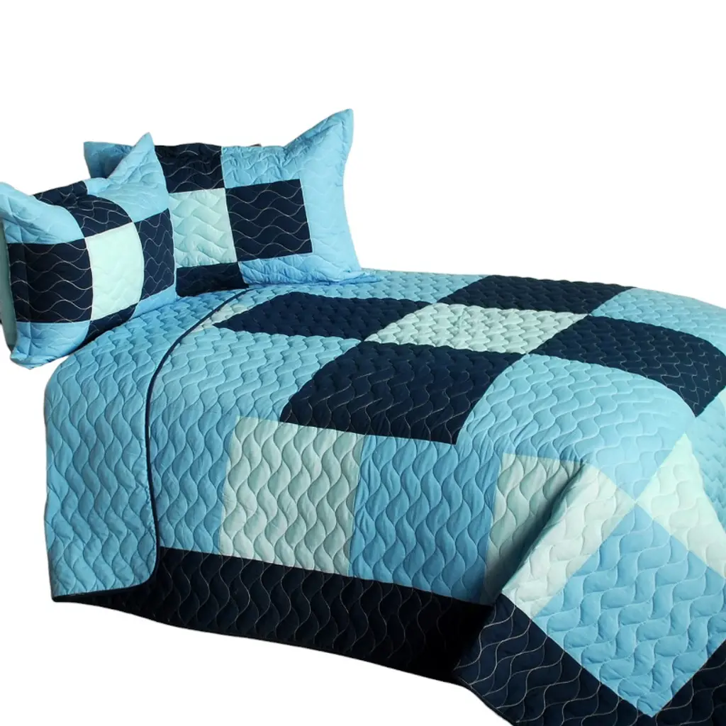 Slickblue Full/queen Vermicelli-quilted Quilt Set Handmade Patchwork Bedding Soft Shades Of Blue 3 Pieces