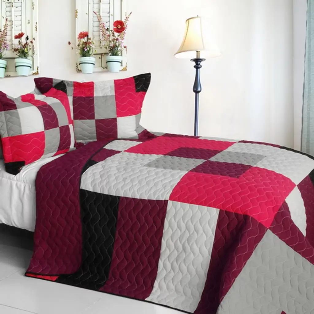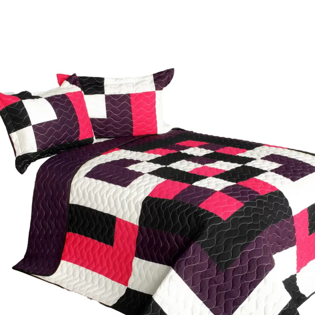 Slickblue Vermicelli-quilted Patchwork Quilt Set, Handmade, Bedding, Geometric, Full/queen, 3Pc, Design 2