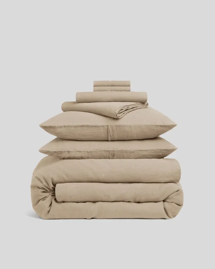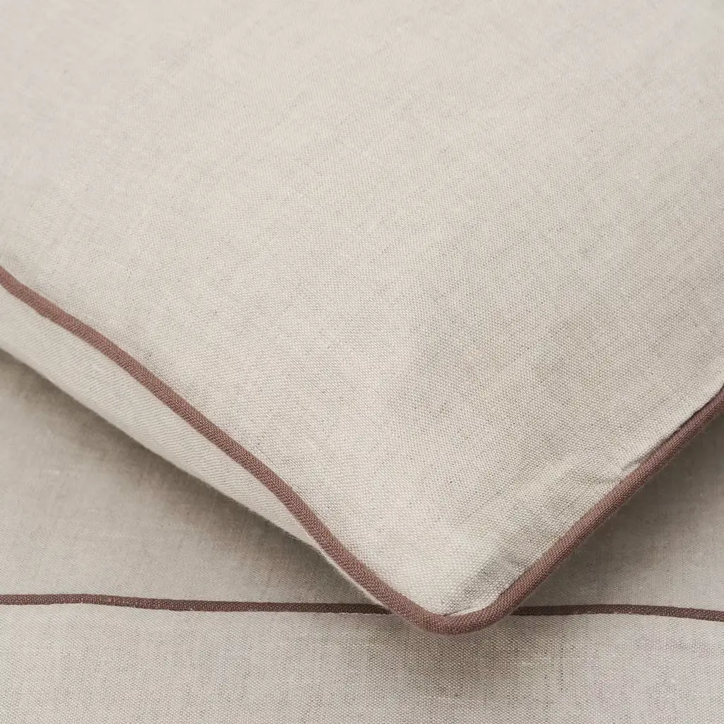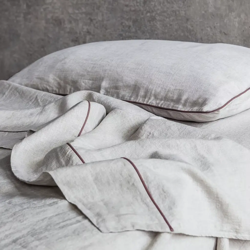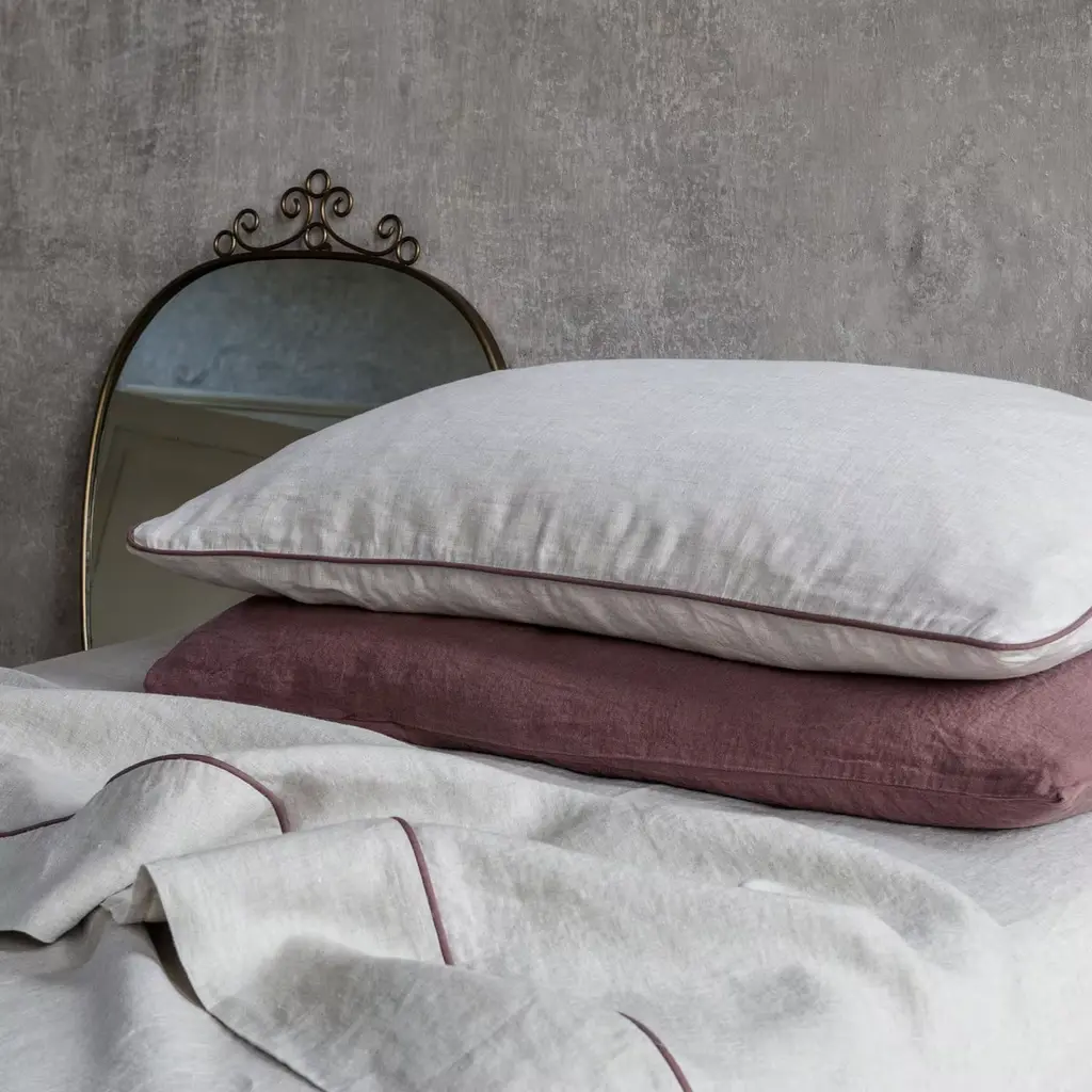 Summer Bed Natural Linen Set With Vintage Pink Piping