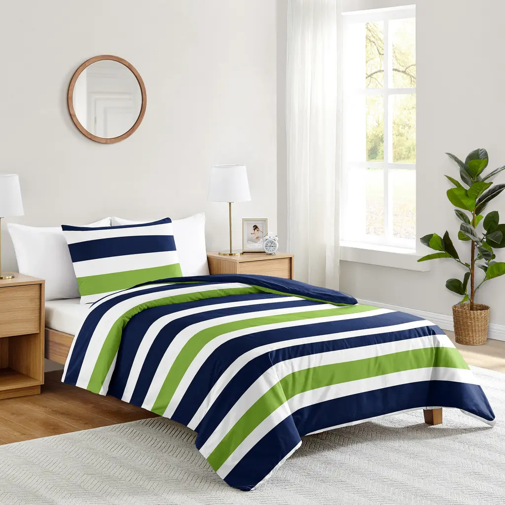 Sweet Jojo Designs Navy And Lime Stripe Collection 2Pc Twin Bedding Set - Twin