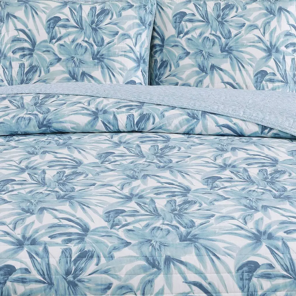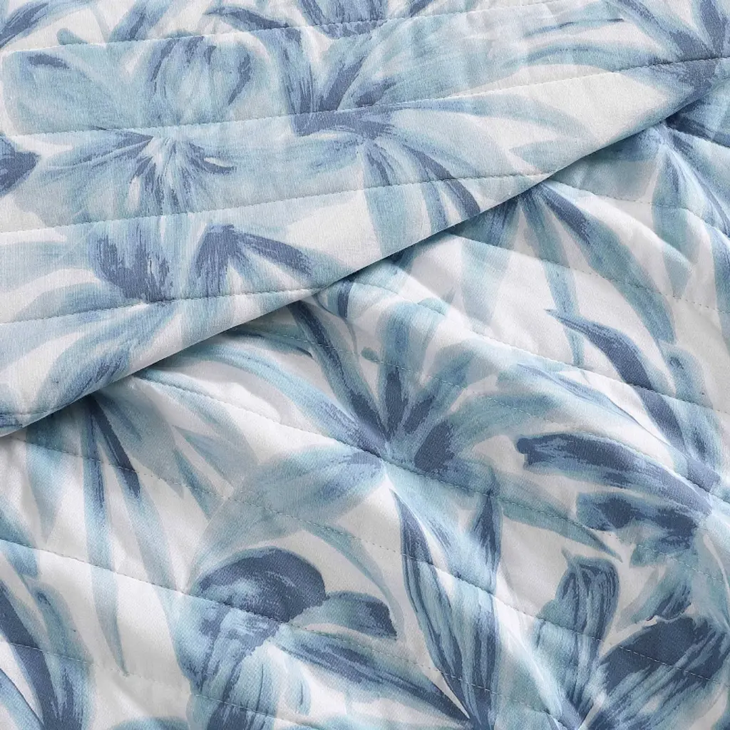 Add a breathable, fresh layer to your bedding ensemble with a coastal inspired Tommy Bahama quilt. This coastal botanical inspired print combines a vibrant essence of color with the serene and calming elements of coastal living. This quilt is 100% cotton, filled with 80% Cotton & 20% Polyester; Blended To Create A Durable Quilt. Lightweight and easy to layer. The quilt set is fully reversible. Machine washable, for easy care.