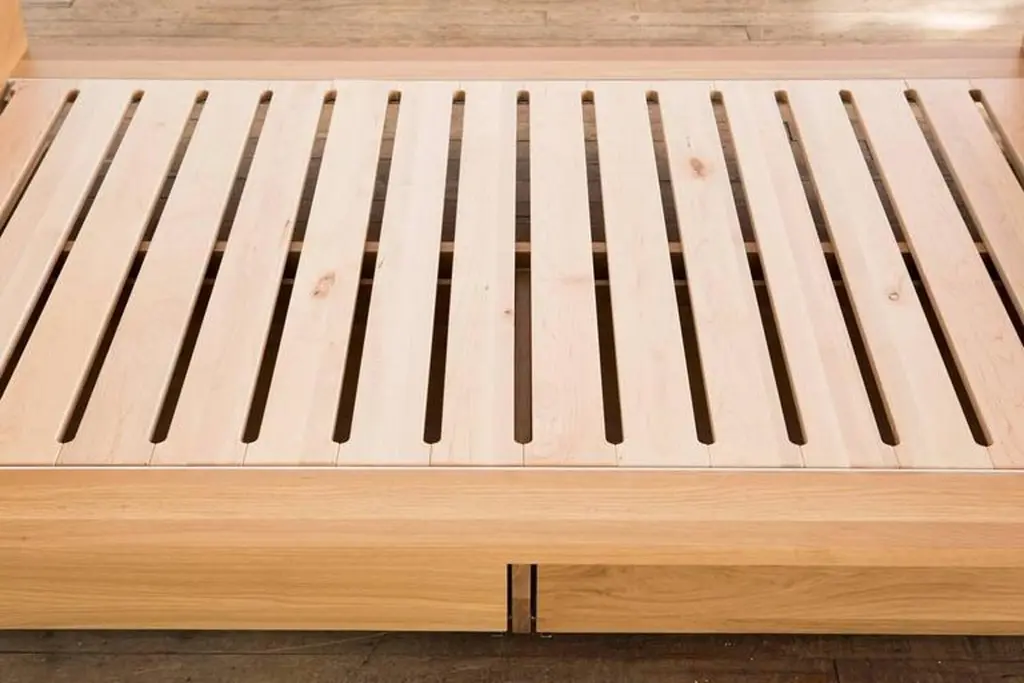 Ab6, Queen-Size Contemporary White Oak Platform Bed With Two Storage Drawers