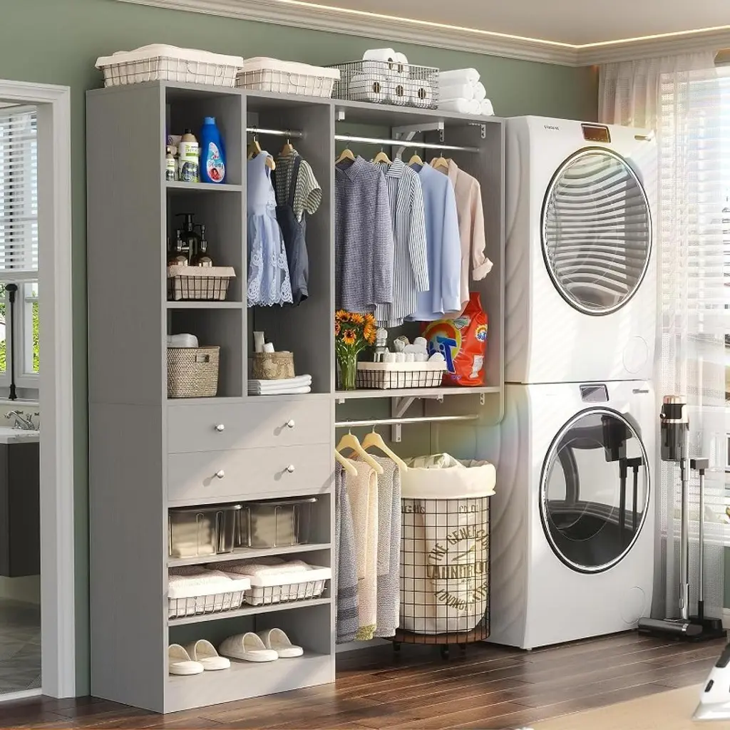 Transform your storage experience with our Wood Closet System with 8 Drawers, a perfect blend of durability, functionality, and modern design. Crafted with high-quality wooden drawers, this system is built to withstand daily use, offering a reliable alternative to flimsy fabric drawers that are prone to damage and difficult to maintain. Each drawer provides ample space to organize your personal belongings, from underwear and socks to folded T-shirts, ensuring everything has its place. A closed drawer provides you with privacy, and three uniquely designed half drawers help you easily find what you want.Whether you're revamping your bedroom closet, organizing an entryway, or creating a tidy laundry room, this closet system is designed to maximize storage while enhancing the aesthetics of your space. Its sturdy construction and thoughtful design make it a long-lasting addition to any home, combining practicality with timeless style.