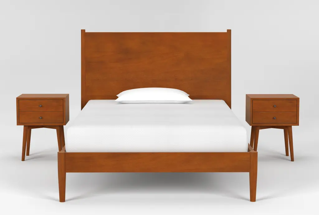 Alton Cherry Ii Full Wood Platform Bed & Headboard 3 Piece Bedroom Set With 2 Night Tables | Adjustable Base Compatible