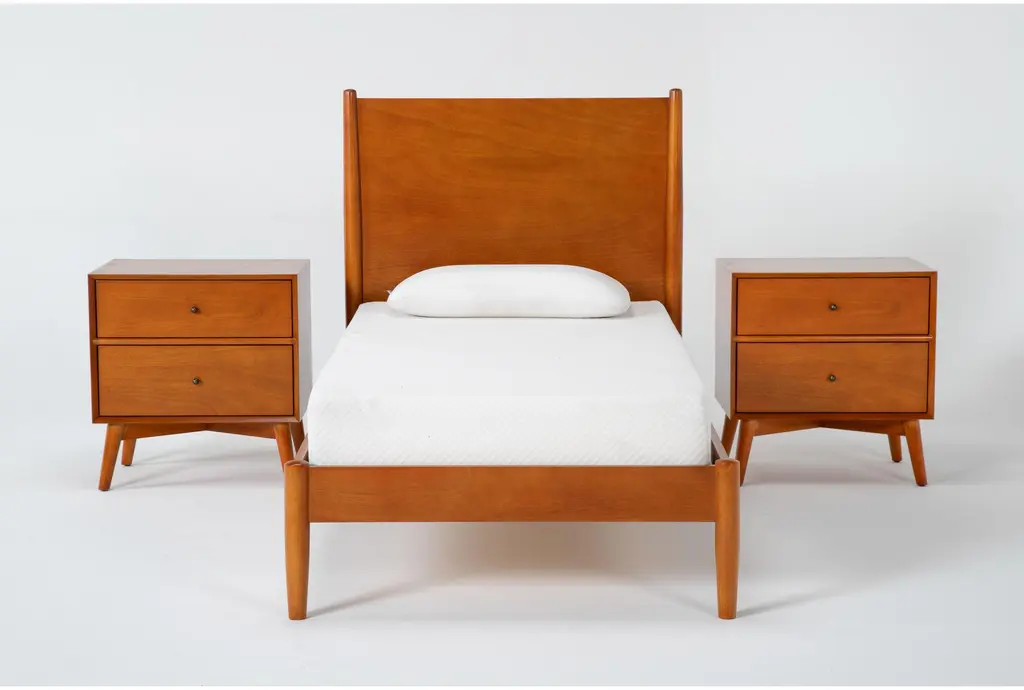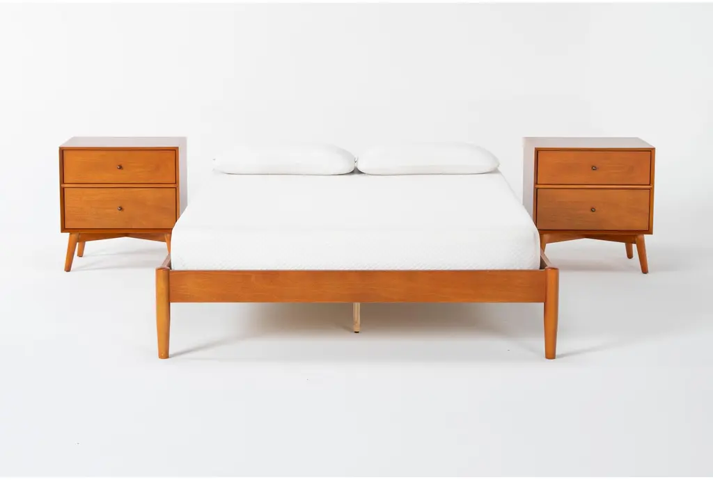 Alton Cherry Ii King Wood Platform 3 Piece Bedroom Set With 2 Night Tables | Adjustable Base Compatible