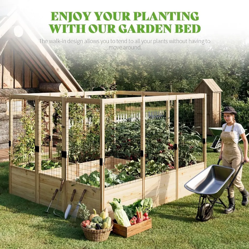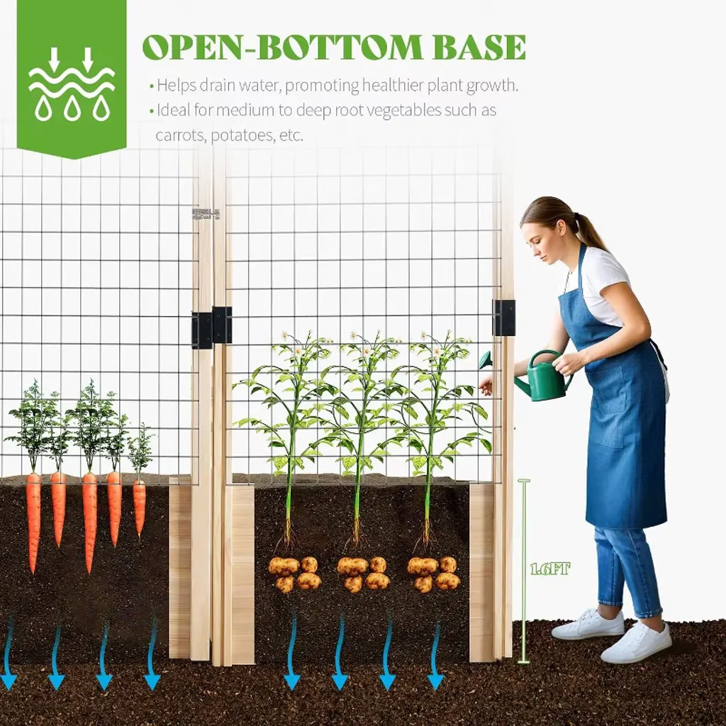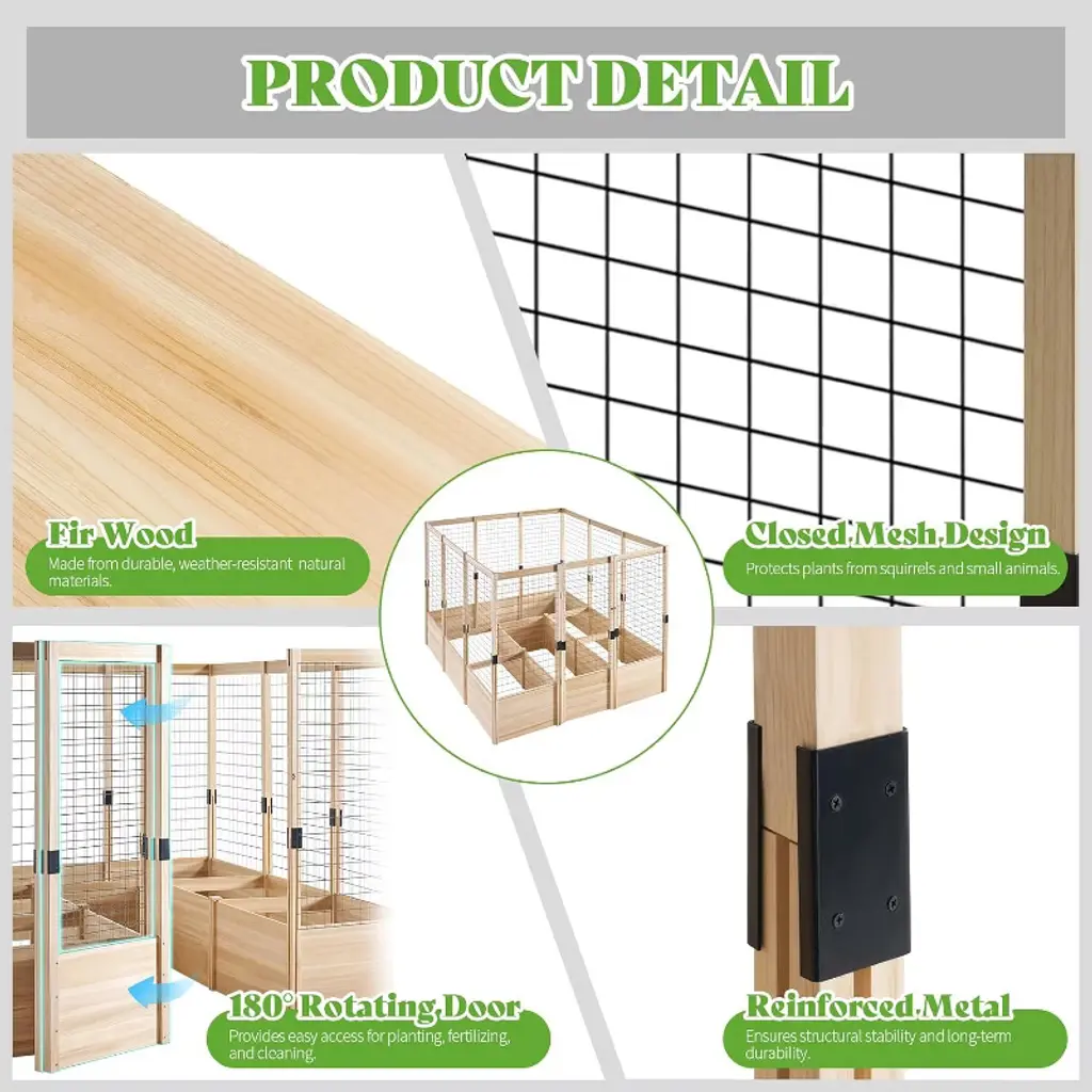 Create the perfect environment for your garden with this thoughtfully designed raised garden bed kit. Ideal for homeowners who want to cultivate vegetables, flowers, or herbs, this garden bed is equipped with everything you need to ensure your plants flourish while staying protected from unwanted visitors. The deer-proof fence adds a crucial layer of protection, keeping deer and other animals from invading your garden and damaging your precious plants. Whether you’re growing your favorite flowers or edible plants, you can rest assured knowing your garden is safe from grazing wildlife. The open base design promotes healthy root growth and excellent drainage, which is essential for plants to thrive. By allowing water to drain freely, it prevents waterlogging and ensures your plants receive the oxygen they need at the roots, resulting in healthier, more productive growth. Not just a garden bed, but a private retreat, this kit also features a lockable door. This thoughtful design element gives you peace of mind, allowing you to securely close the garden bed and protect your plants from both animals and the elements. It's your own little sanctuary for nurturing the plants you love. Crafted from solid, high-quality natural fir wood, this raised garden bed is built to withstand the test of time. Known for its durability and natural resistance to weather, fir wood offers a solid and stable foundation for your plants, ensuring years of reliable use. The attractive, natural wood finish also complements any garden design, blending seamlessly into your outdoor space. Installation is a breeze with the easy-to-assemble design. Thanks to its clever slot and tab construction, you can have your garden bed set up in as little as 30 minutes. No complicated tools or instructions are needed—just a straightforward, quick setup that gets you growing in no time. Whether you're an experienced gardener or just getting started, this raised garden bed kit provides the perfect solution for growing your favorite plants in a safe, secure, and easy-to-manage environment. With its thoughtful design, durability, and simple assembly, it’s the ideal addition to any garden, patio, or backyard.