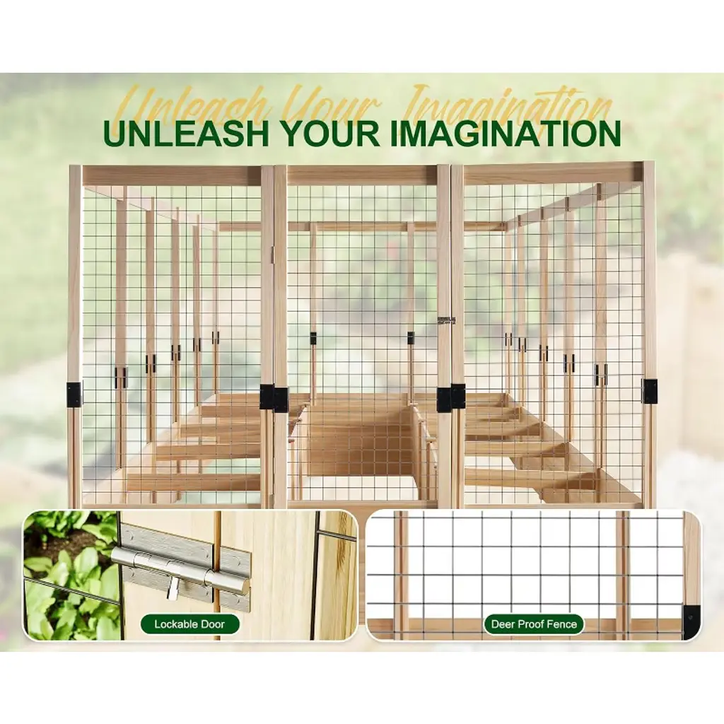 Create the perfect environment for your garden with this thoughtfully designed raised garden bed kit. Ideal for homeowners who want to cultivate vegetables, flowers, or herbs, this garden bed is equipped with everything you need to ensure your plants flourish while staying protected from unwanted visitors. The deer-proof fence adds a crucial layer of protection, keeping deer and other animals from invading your garden and damaging your precious plants. Whether you’re growing your favorite flowers or edible plants, you can rest assured knowing your garden is safe from grazing wildlife. The open base design promotes healthy root growth and excellent drainage, which is essential for plants to thrive. By allowing water to drain freely, it prevents waterlogging and ensures your plants receive the oxygen they need at the roots, resulting in healthier, more productive growth. Not just a garden bed, but a private retreat, this kit also features a lockable door. This thoughtful design element gives you peace of mind, allowing you to securely close the garden bed and protect your plants from both animals and the elements. It's your own little sanctuary for nurturing the plants you love. Crafted from solid, high-quality natural fir wood, this raised garden bed is built to withstand the test of time. Known for its durability and natural resistance to weather, fir wood offers a solid and stable foundation for your plants, ensuring years of reliable use. The attractive, natural wood finish also complements any garden design, blending seamlessly into your outdoor space. Installation is a breeze with the easy-to-assemble design. Thanks to its clever slot and tab construction, you can have your garden bed set up in as little as 30 minutes. No complicated tools or instructions are needed—just a straightforward, quick setup that gets you growing in no time. Whether you're an experienced gardener or just getting started, this raised garden bed kit provides the perfect solution for growing your favorite plants in a safe, secure, and easy-to-manage environment. With its thoughtful design, durability, and simple assembly, it’s the ideal addition to any garden, patio, or backyard.