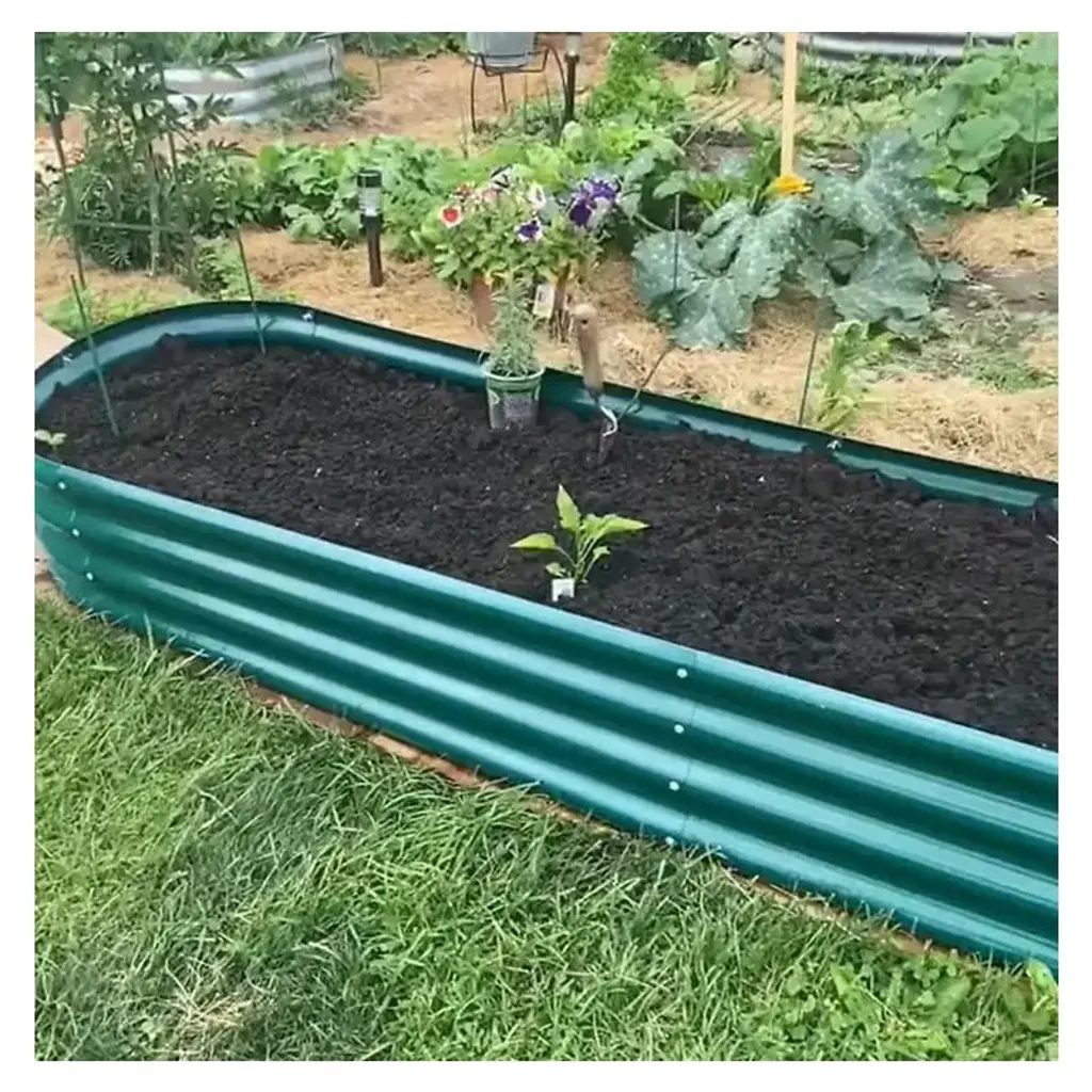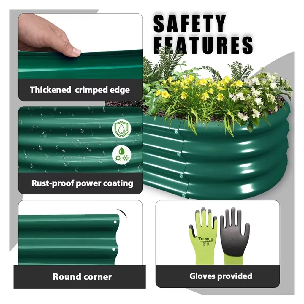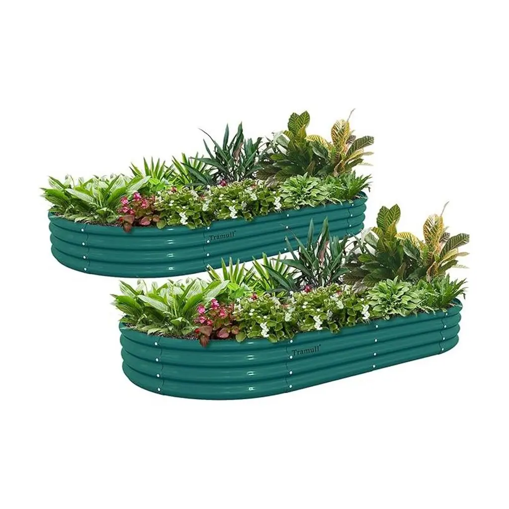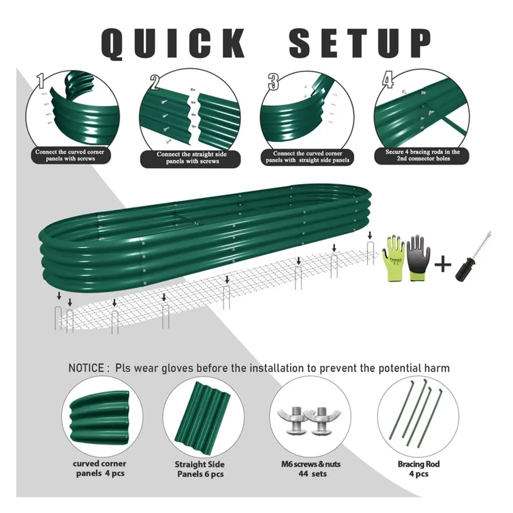 Anybear 12x2ft Green Oval Metal Raised Garden Bed W/ Gopher Mesh