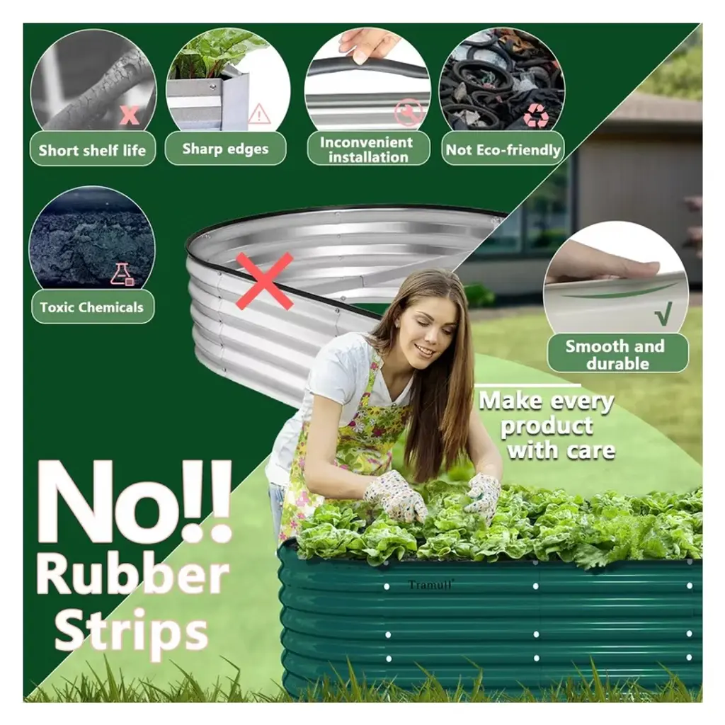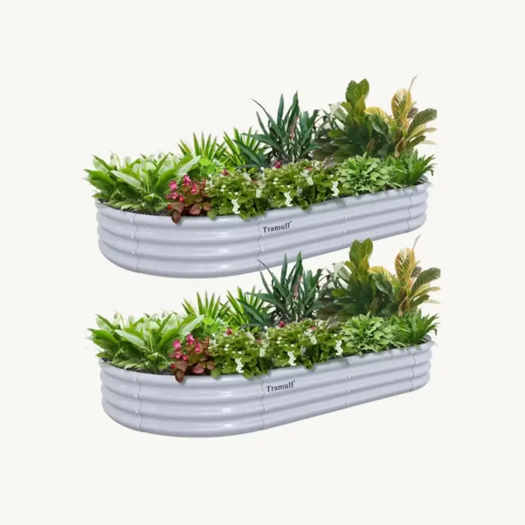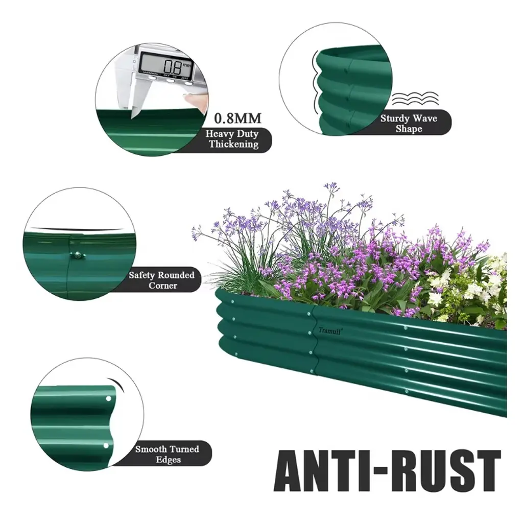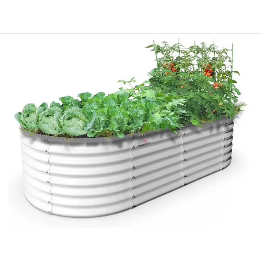 Anybear 12x2ft Green Oval Metal Raised Garden Bed W/ Gopher Mesh