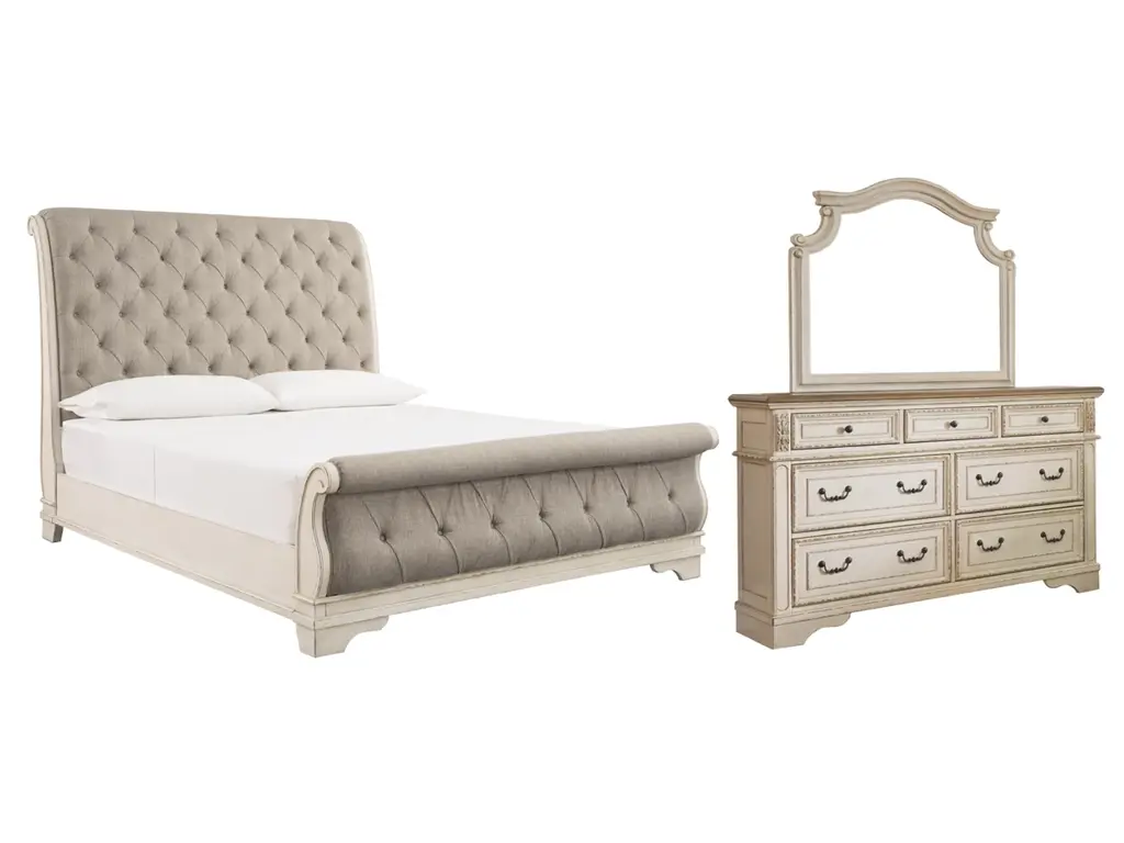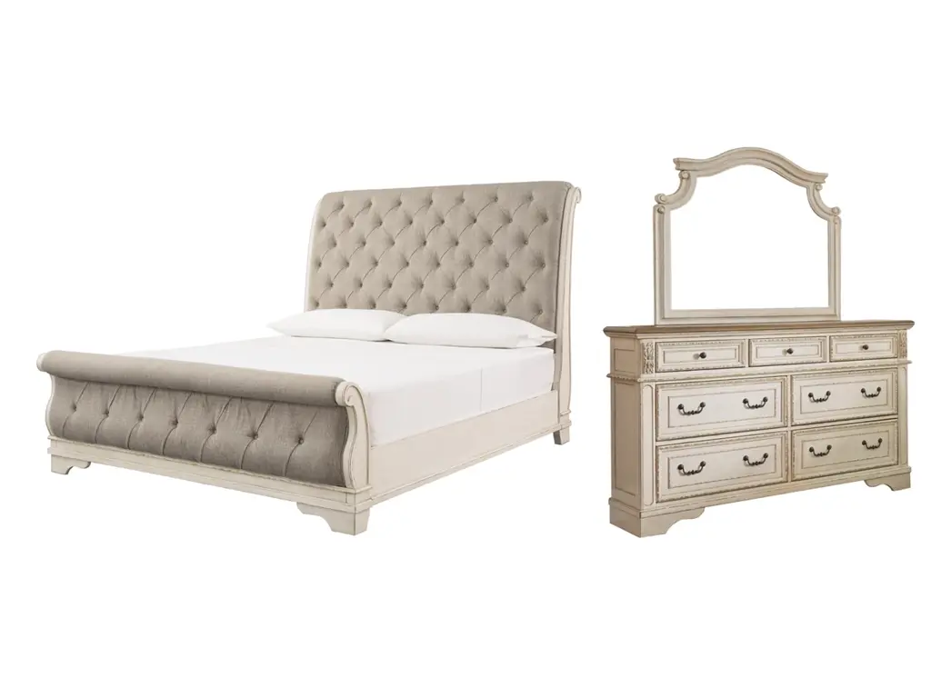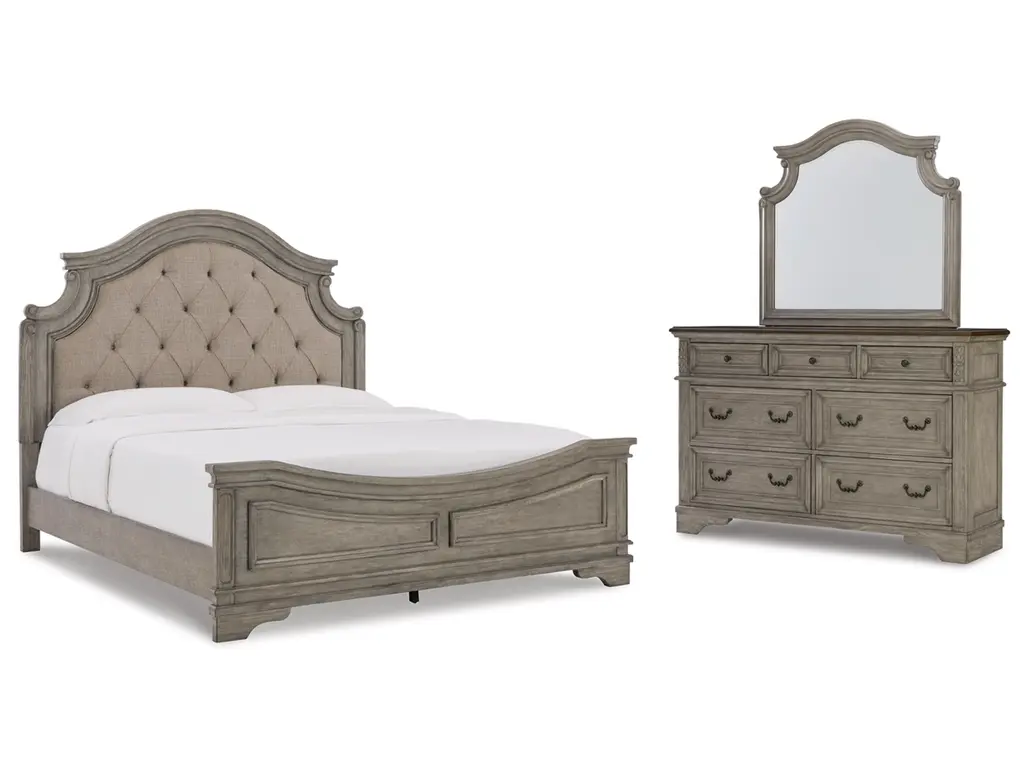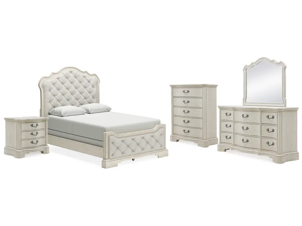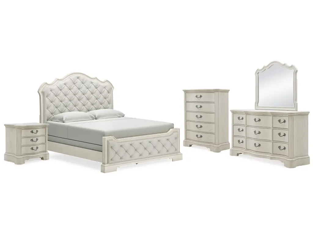 Arlendyne King Upholstered Bed With Mirrored Dresser And Chest