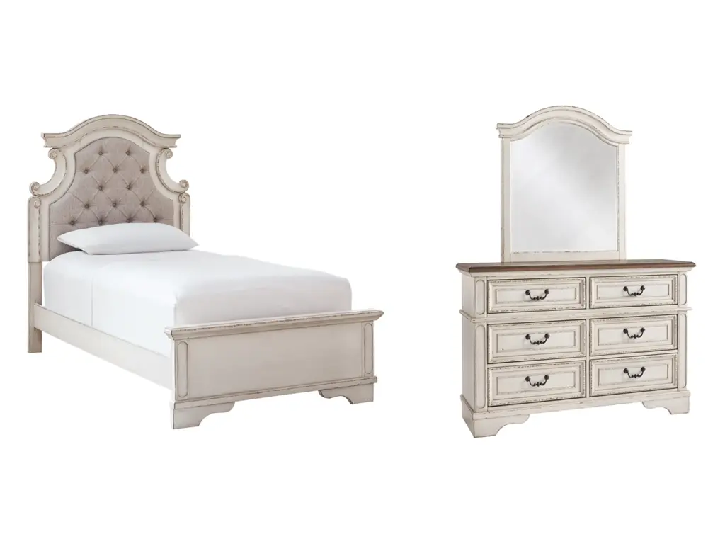 Add a touch of romance to your bedroom with the Arlendyne bedroom package. Its antiqued white painted finish is the picture of easy elegance. From serpentine-shaped silhouettes to head-to-toe button tufting, the set's decadent details further indulge your love of luxury.