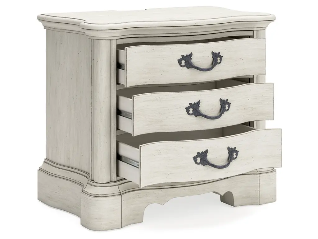 Add a touch of romance to your bedroom with the Arlendyne bedroom package. Its antiqued white painted finish is the picture of easy elegance. From serpentine-shaped silhouettes to head-to-toe button tufting, the set's decadent details further indulge your love of luxury.