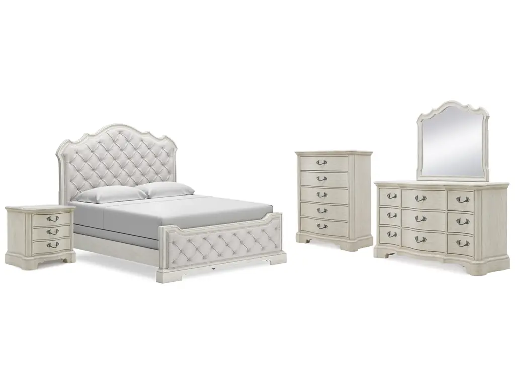 Arlendyne Queen Upholstered Bed With Mirrored Dresser, Chest And Nightstand