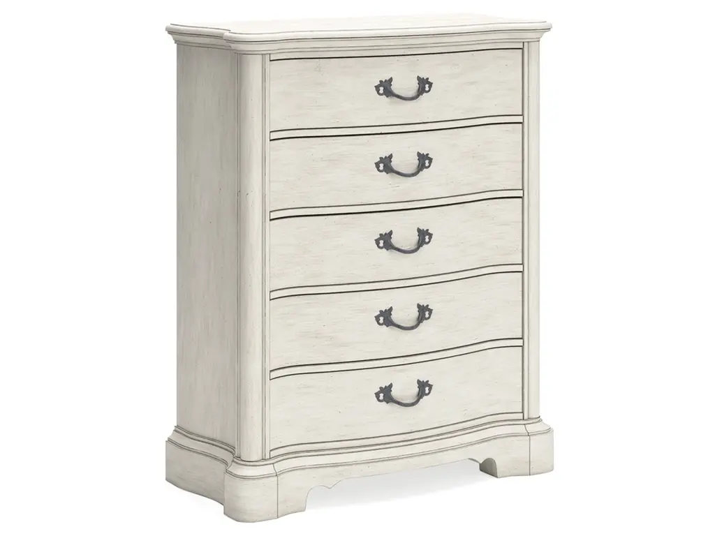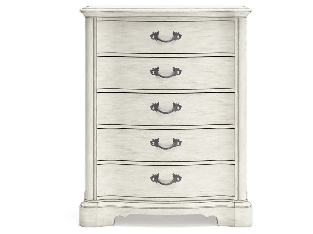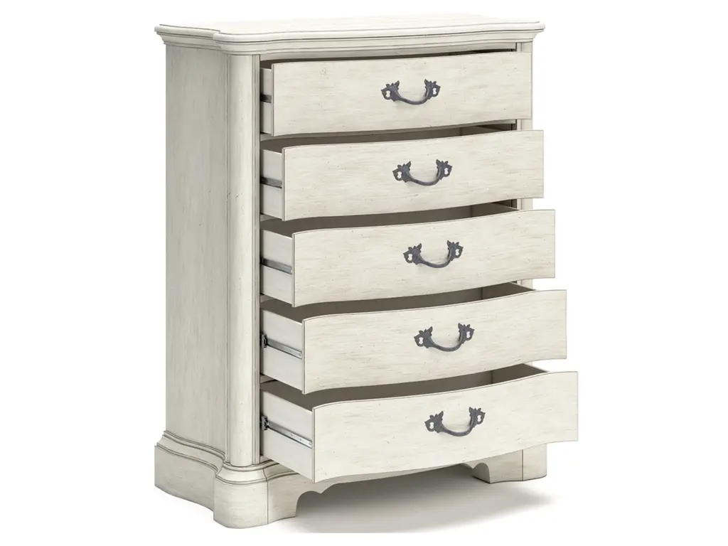 Add a touch of romance to your bedroom with the Arlendyne bedroom package. Its antiqued white painted finish is the picture of easy elegance. From serpentine-shaped silhouettes to head-to-toe button tufting, the set's decadent details further indulge your love of luxury.