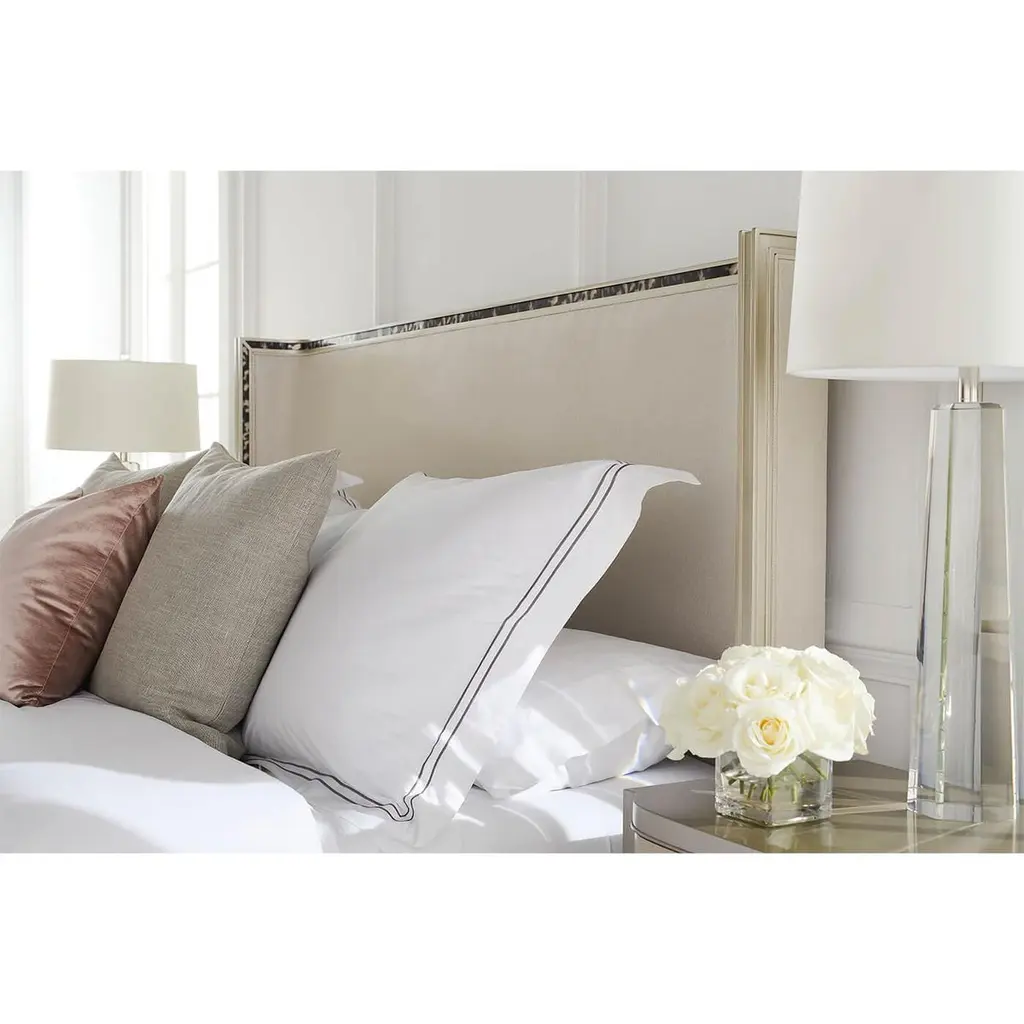 Art Deco Style Upholstered King Bed With Tortoise Inlay