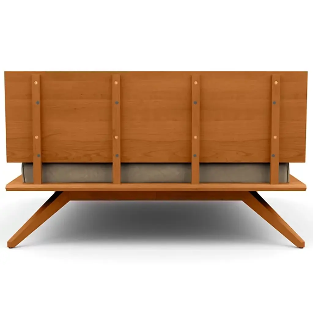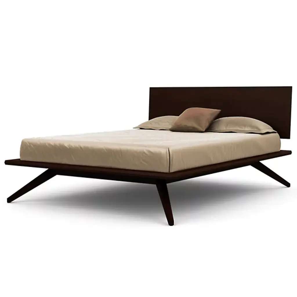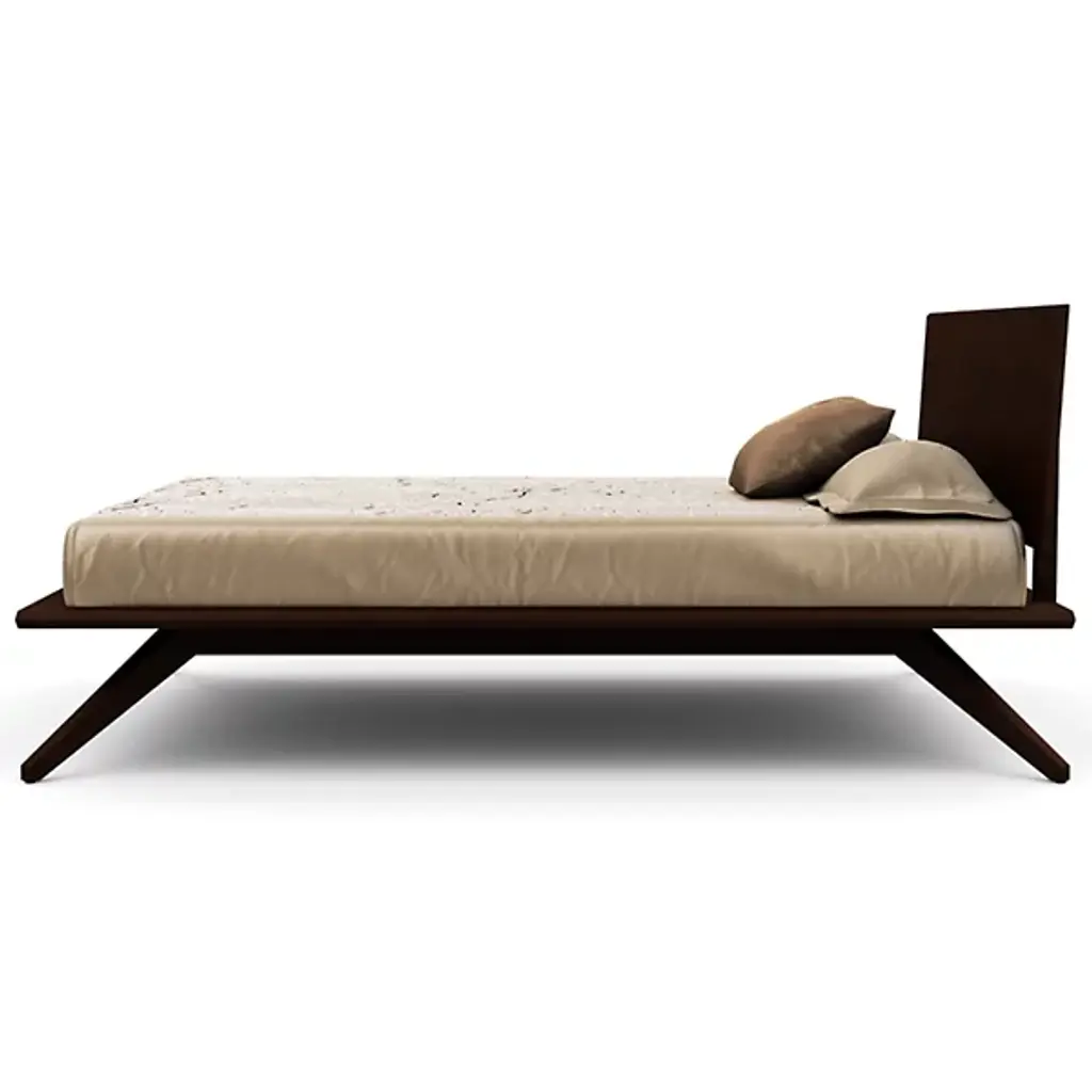 With its deeply splayed legs, the Copeland Furniture Astrid Bed with 1 Headboard Panel is an elegantly modern feat of engineering. It is made entirely out of solid hardwood, in a range of possible finishes protected by a Greenguard certified top coat. You can adjust the headboard to be 36" or 39" tall to accommodate mattresses of varying thicknesses.