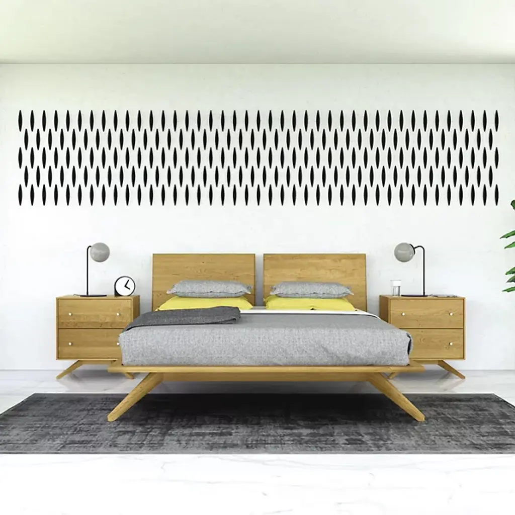 The Copeland Furniture Astrid Bed with 2 Headboard Panels features deeply splayed, cantilevered legs, an elegantly angular touch for modern bedrooms. The bed is made entirely out of solid hardwood, with the chosen finish protected by a Greenguard certified top coat. You can accommodate mattresses of varying thicknesses by adjusting the headboard panels to be 40" or 44" tall.