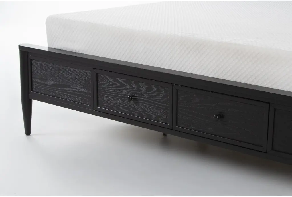 As part of a complete whole-home collection that was developed entirely by Living Spaces, the Austen bedroom collection reflects a unique and thoughtful approach to design. With a refined all-American look and extensive functionality, each piece is a natural and purposeful addition to your bedroom. A textured black finish accentuates oak veneer and solid wood, while long, turned and tapered posts distinguish the frames. We offer bed options with and without storage, so you can enjoy no storage, side storage, footboard storage, or side and footboard storage.