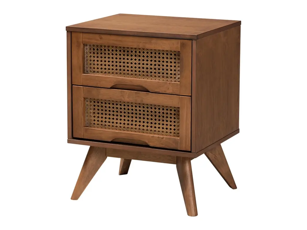 Elevate the potential of your bedroom while crafting a personal haven with the remarkable Asami bedroom set. Made in Malaysia, this mid-century set includes one bed and two nightstands crafted from sturdy wood. Each nightstand features two drawers to organize all your bedside essentials while reserving the tabletops for daily use. The Asami requires assembly and utilizes wood slats for mattress support, eliminating the need for a box spring. Beautifully woven rattan embellishments add a touch of rustic elegance, making the Asami bedroom set an enchanting arrangement.
