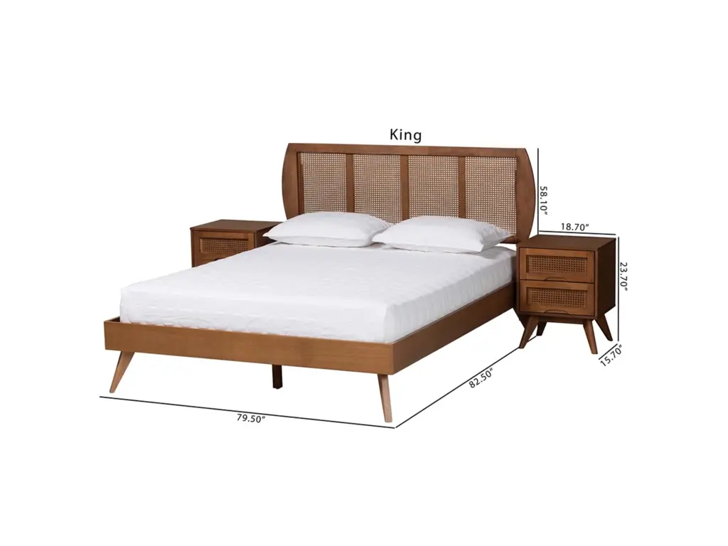 Baxton Studio Asami King Panel Bed With 2 Nightstands