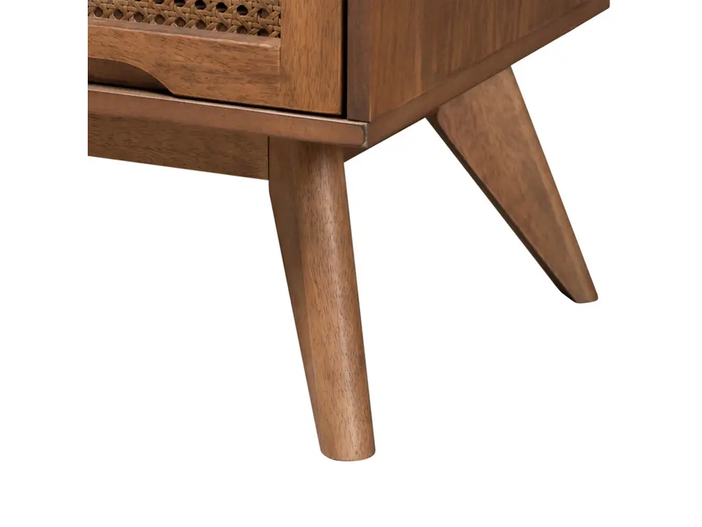Refresh both the capability and charisma of your bedroom with the fantastic Demeter bedroom set. Made in Malaysia, this mid-century set includes one bed and two nightstands crafted from sturdy wood. Each nightstand is fitted with two drawers to accommodate your needs while reserving the tabletops for nightly use. The Demeter requires assembly and utilizes wood slats for mattress support, eliminating the need for a box spring. Brilliantly woven rattan embellishments lend classic exuberance, making the Demeter bedroom set an incredible arrangement.