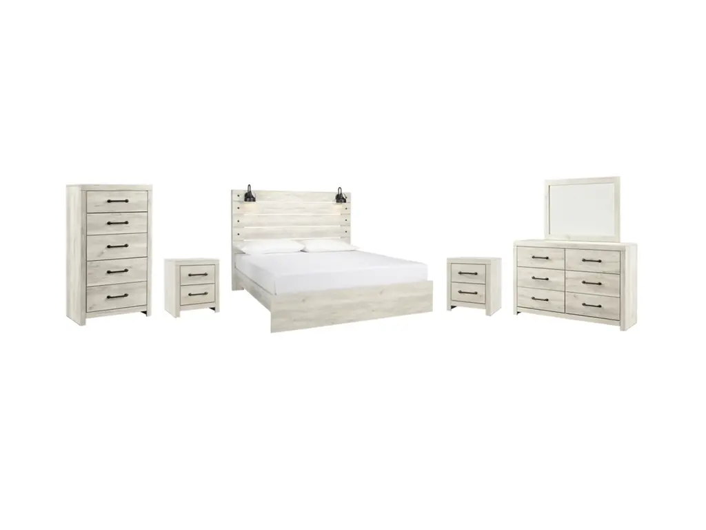 Bellaby King Panel Bed With Mirrored Dresser, Chest And 2 Nightstands