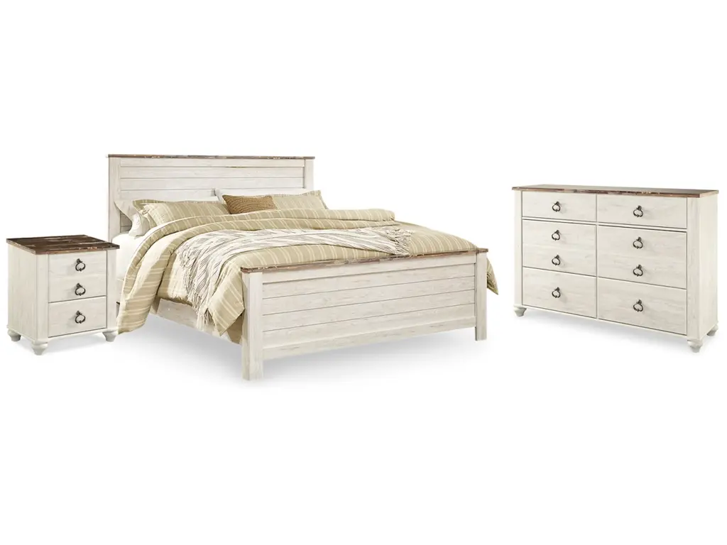 Express your farmhouse style with the Bellaby bedroom set. Wispy white finish over replicated oak wood grain is a delightful change from the ordinary. Clean-lined, classic styling provides a country chic aesthetic that’s a breath of fresh air.
