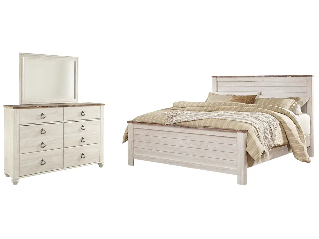 Express your farmhouse style with the Bellaby bedroom set. Wispy white finish over replicated oak wood grain is a delightful change from the ordinary. Clean-lined, classic styling provides a country chic aesthetic that’s a breath of fresh air.