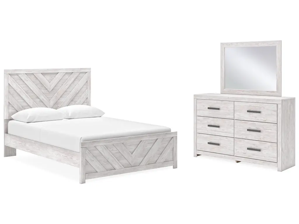 Bellaby Queen Crossbuck Panel Bed With Mirrored Dresser