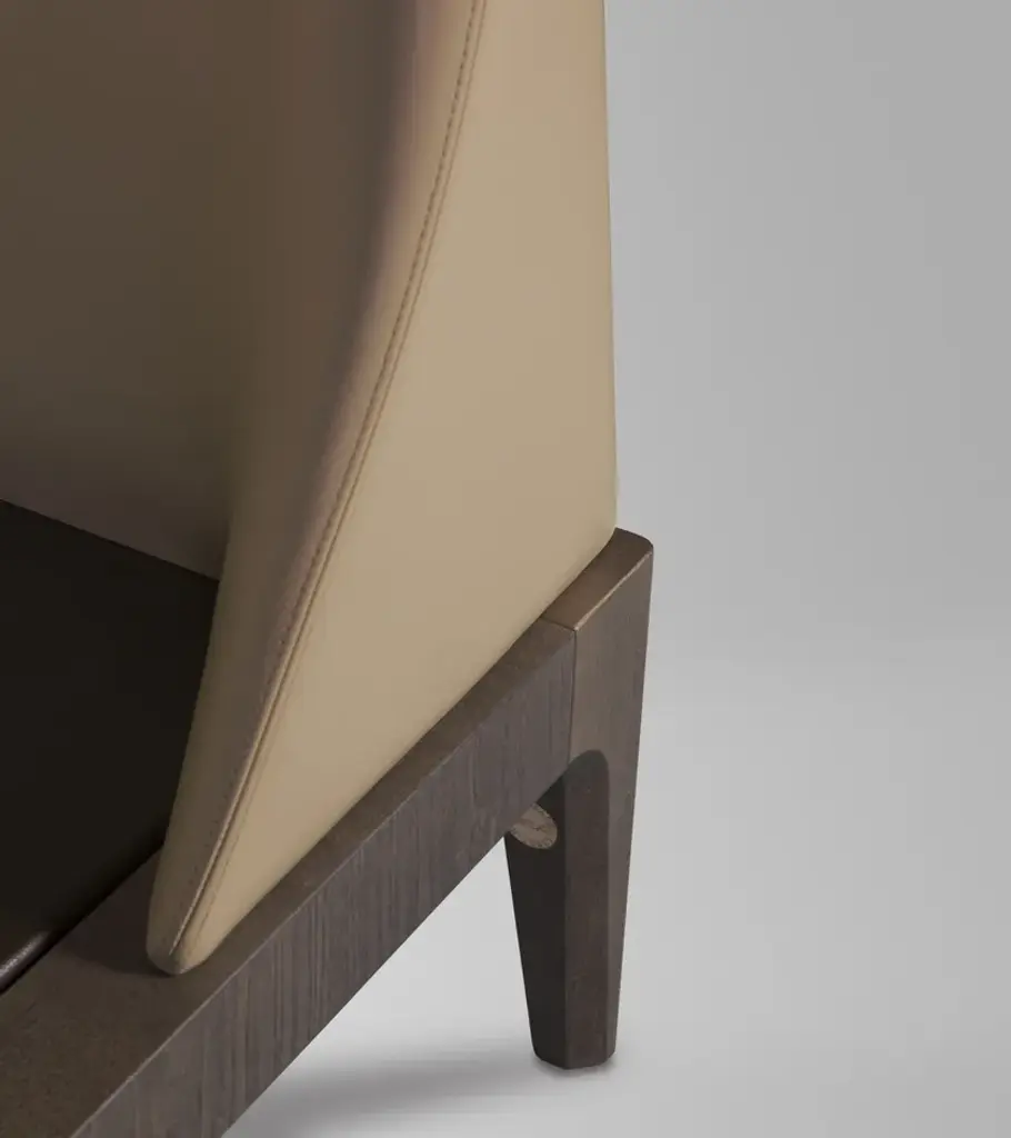Bed made of ash wood with upholstered headboardThe BELLAGGIO collection features strong and refined details, such as chamfers and taperings, adding simplicity and appeal. Angled bevels make the structure thinner and lighter, delicate though resistant. These are extremely versatile pieces, apt to furnish a variety of environments, from sober and sophisticated rooms to the most glamorous and exclusive spaces. Their essential shapes, interpreted by contemporary timeless design, are enhanced by the highest quality craftsmanship of leather and wood.