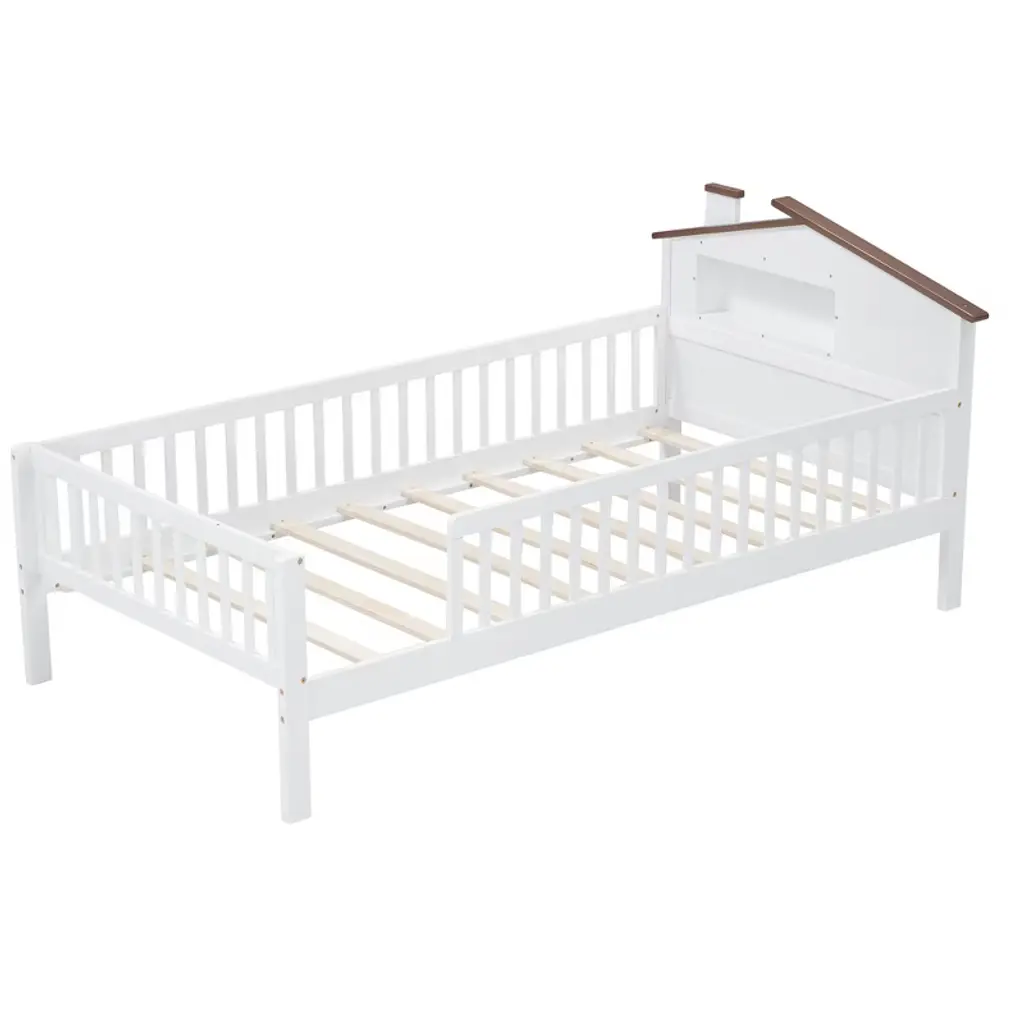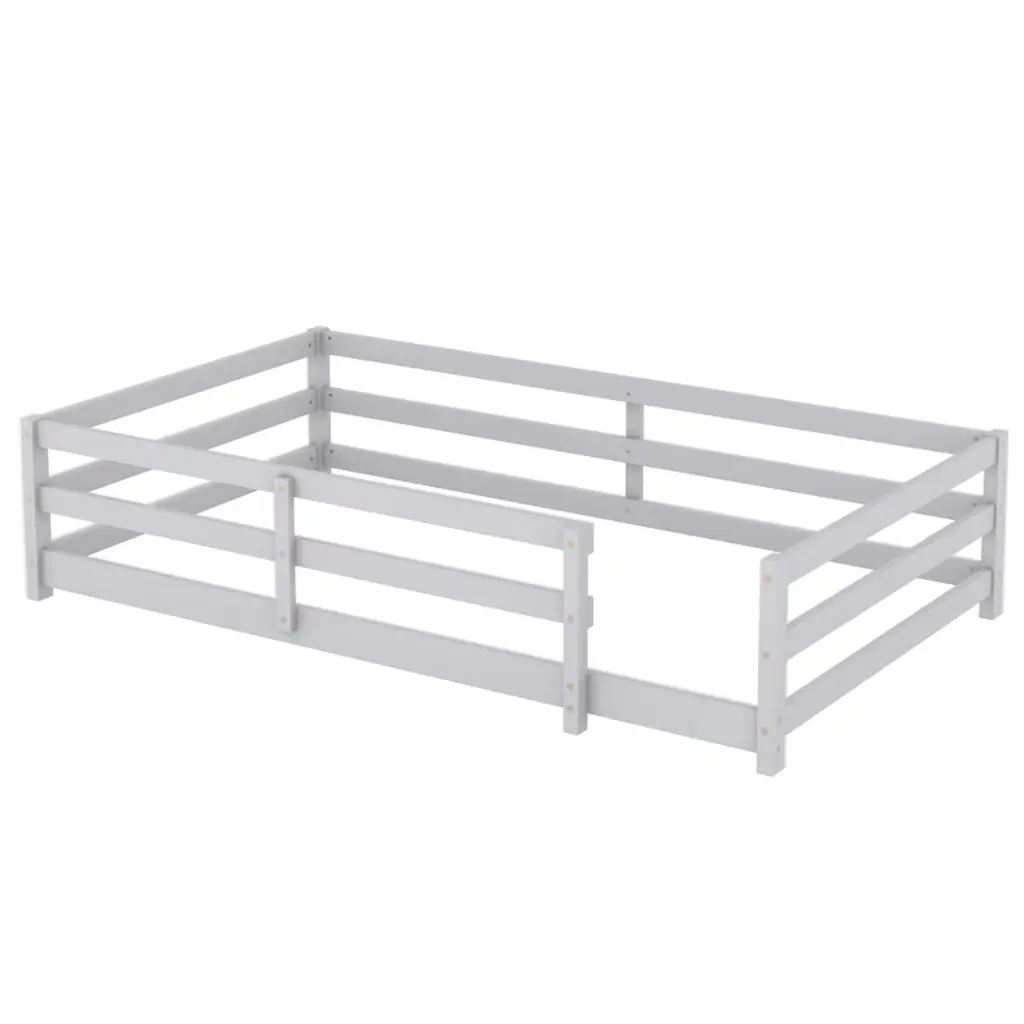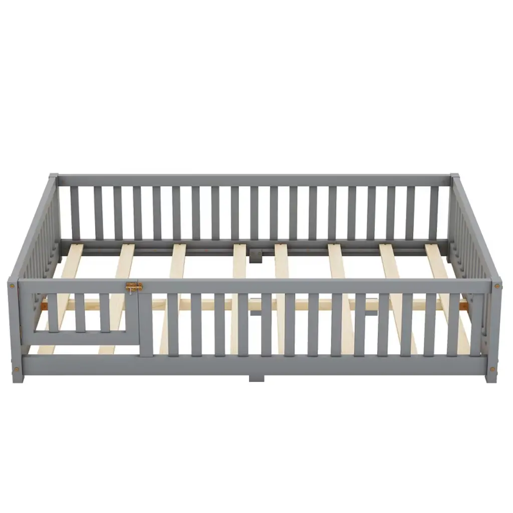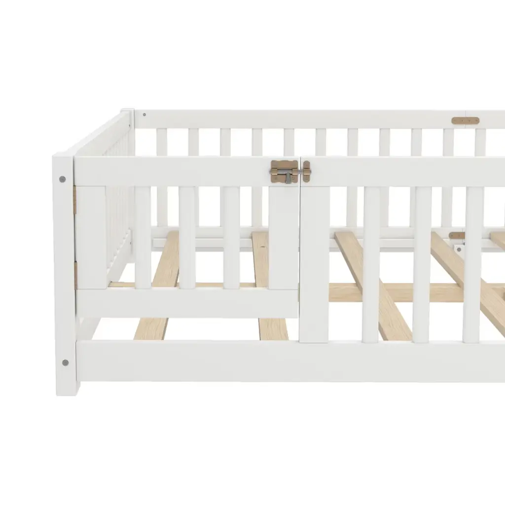 Bellemave Queen Size Bed Floor Bed With Safety Guardrails And Door For Kids, White