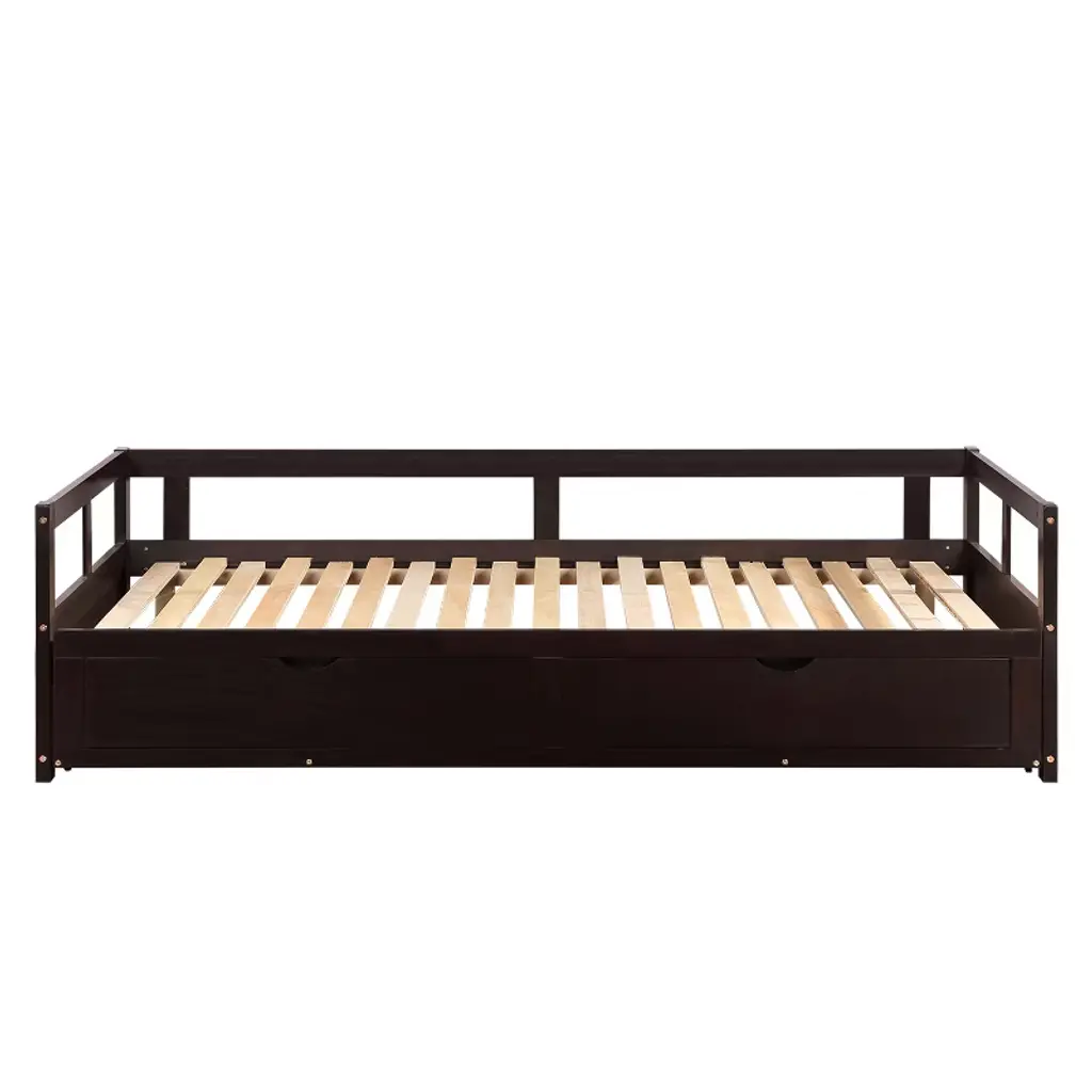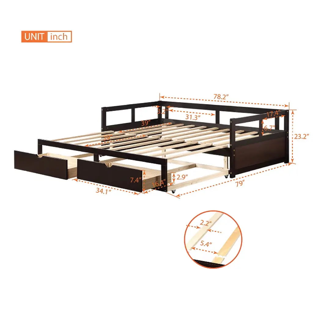 Bellemave Twin Daybed With Storage Drawers, Extendable Twin To King Day Bed With Slats For Kids, Teens, Adults, Espresso Daybed Twin To King Size