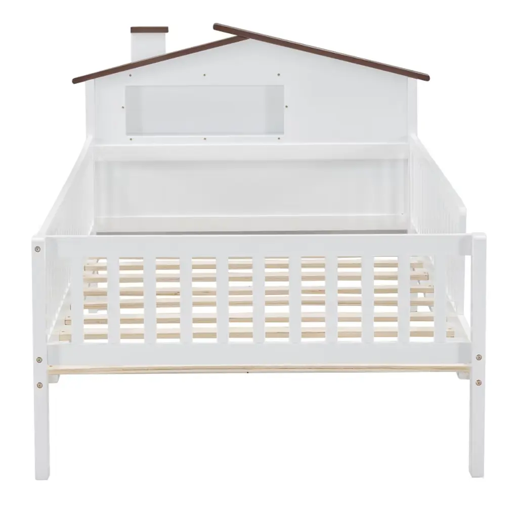Fuse comfort and multifunction with this versatile bed. A house-shaped headboard, complete with a chimney and a window, this platform bed adds a rustic, country feel to your room. Crafted from Pine Wood+MDF, the house bed features storage space. Multiple storage designs bring convenience to your life.