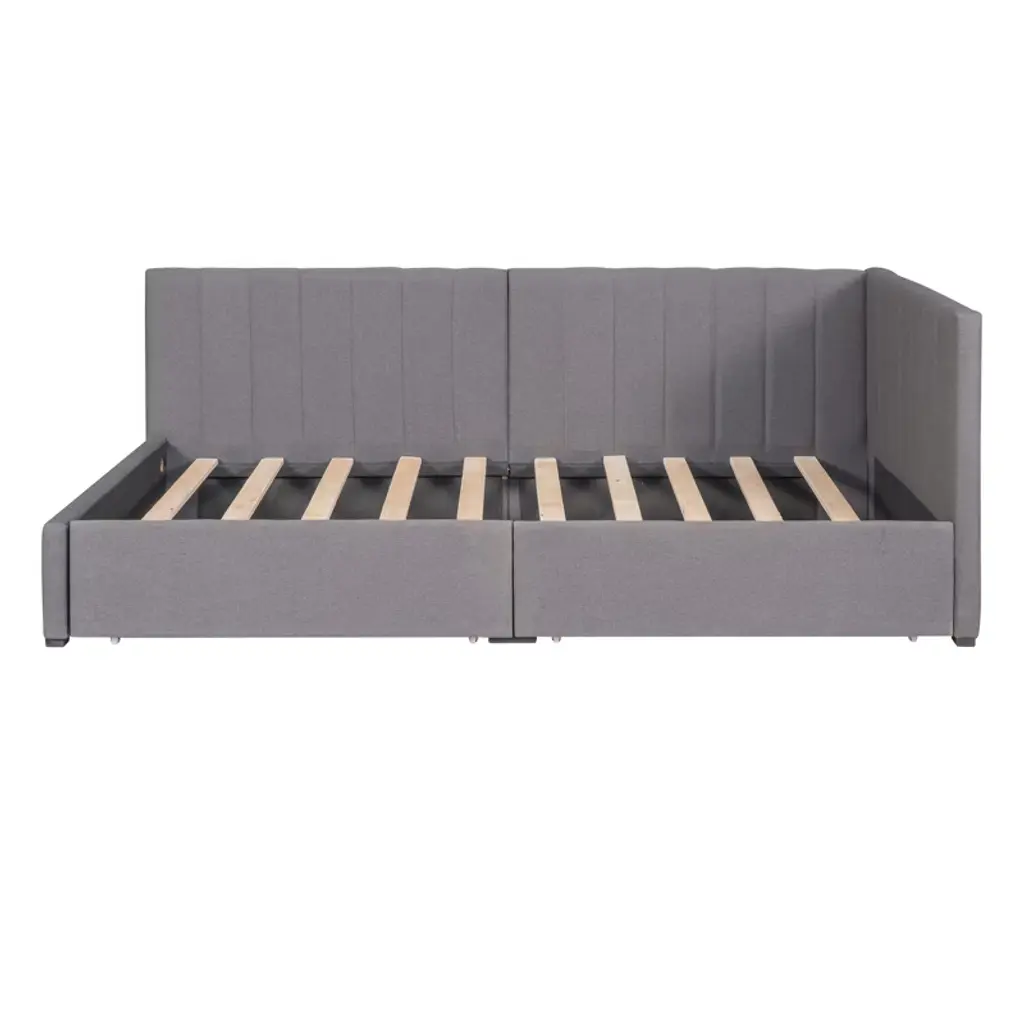 This beautiful Upholstered Platform Bed adds a contemporary chic look to your bedroom and is upholstered in linen fabric to add extra comfort. Sturdy wood frame construction and a wooden slat system to add extra stability and safety.The upholstered platform bed with trundle and 3 drawers is such a versatile piece, bringing functionality, versatility, and style to your home, perfect space saving functionality.