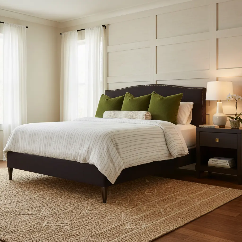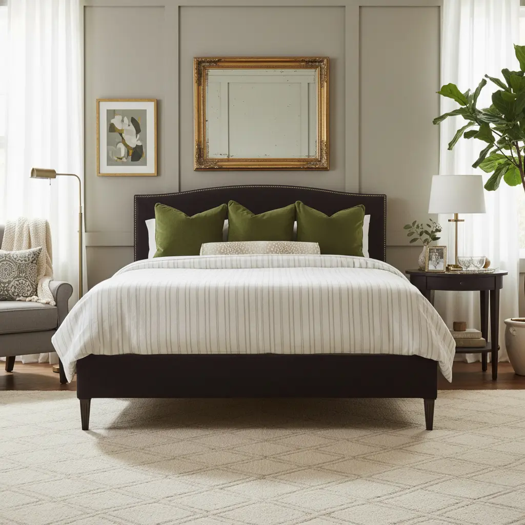 Exclusive to One Kings Lane: The Bridgeway Arched Bed in mink velvet delivers refined elegance with its sweeping arch silhouette and subtle nailhead detail. Wrapped in plush velvet and grounded by its graceful curve, it’s more than just a statement piece—it's built to last. Handcrafted in High Point, NC, with a reliable hardwood-laminate frame, high-density foam padding, and backed by a lifetime warranty on the frame.