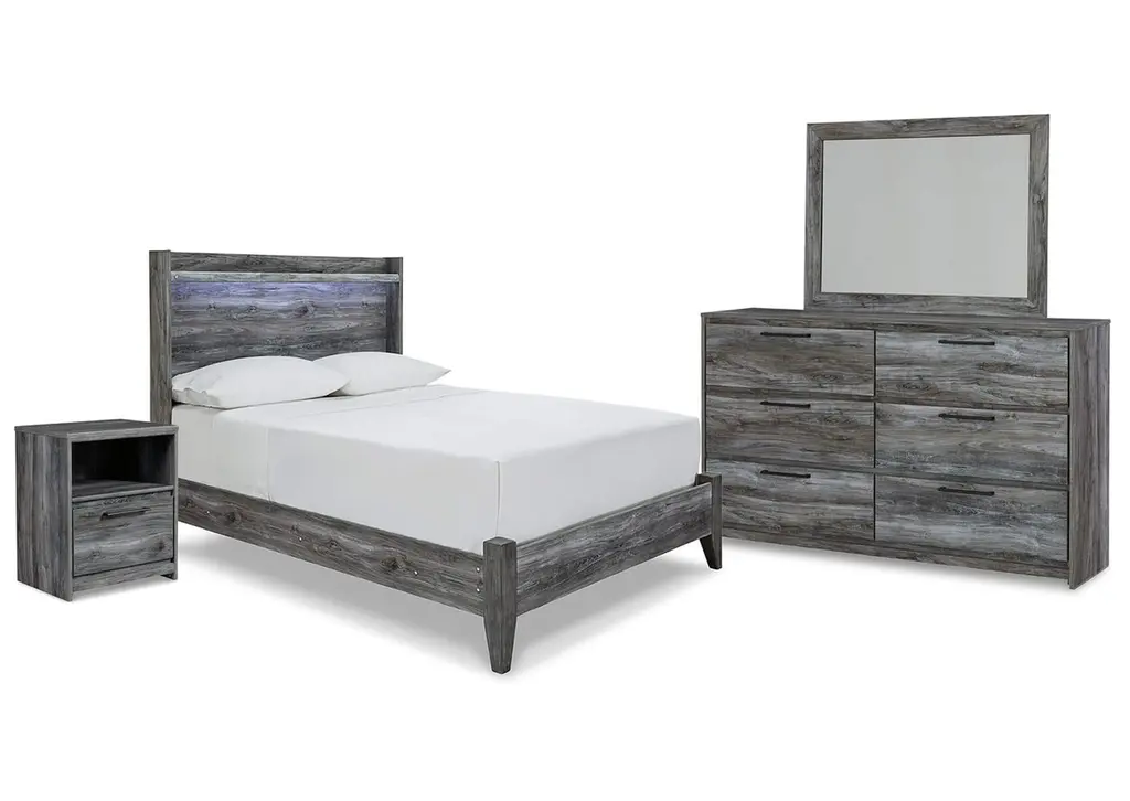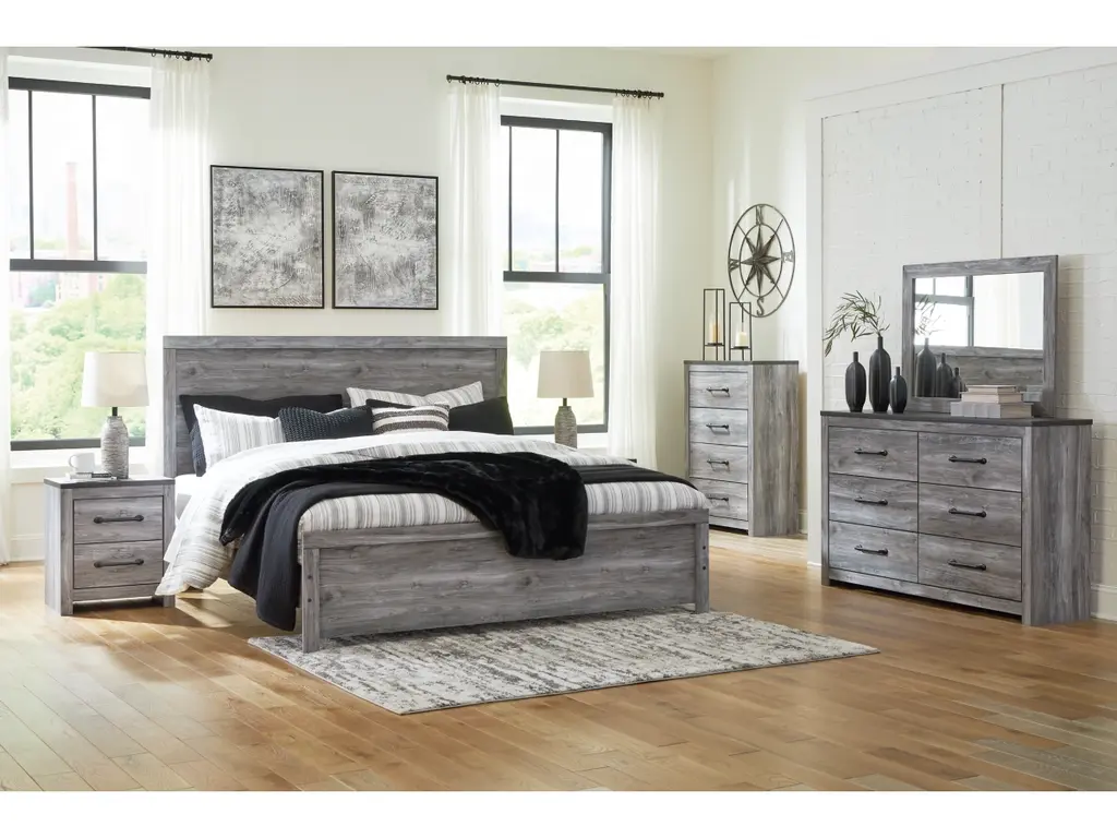 Alluring smoky gray hues create an ambiance that just feels right. The Bronyan bedroom set has a charming wood-like appeal enriched by neutral tones and a textured look. Its calming presence brings a sense of serenity to your space.