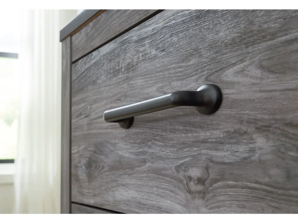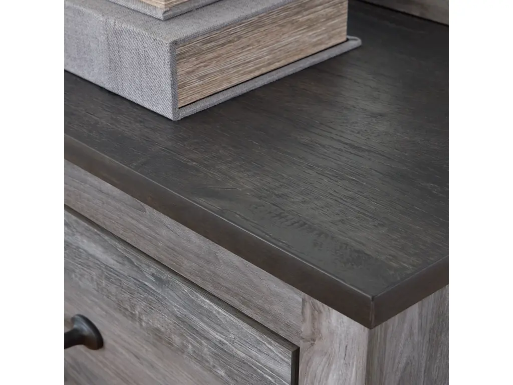 Alluring smoky gray hues create an ambiance that just feels right. The Bronyan bedroom package has a charming wood-like appeal enriched by a two-tone, textured look. Light neutral shades contrasted by a dark charcoal finish bring a refined yet relaxed feel to contemporary decor and a sense of serenity to your space.