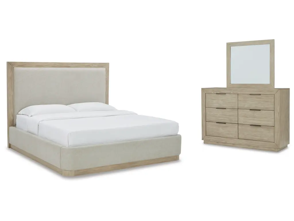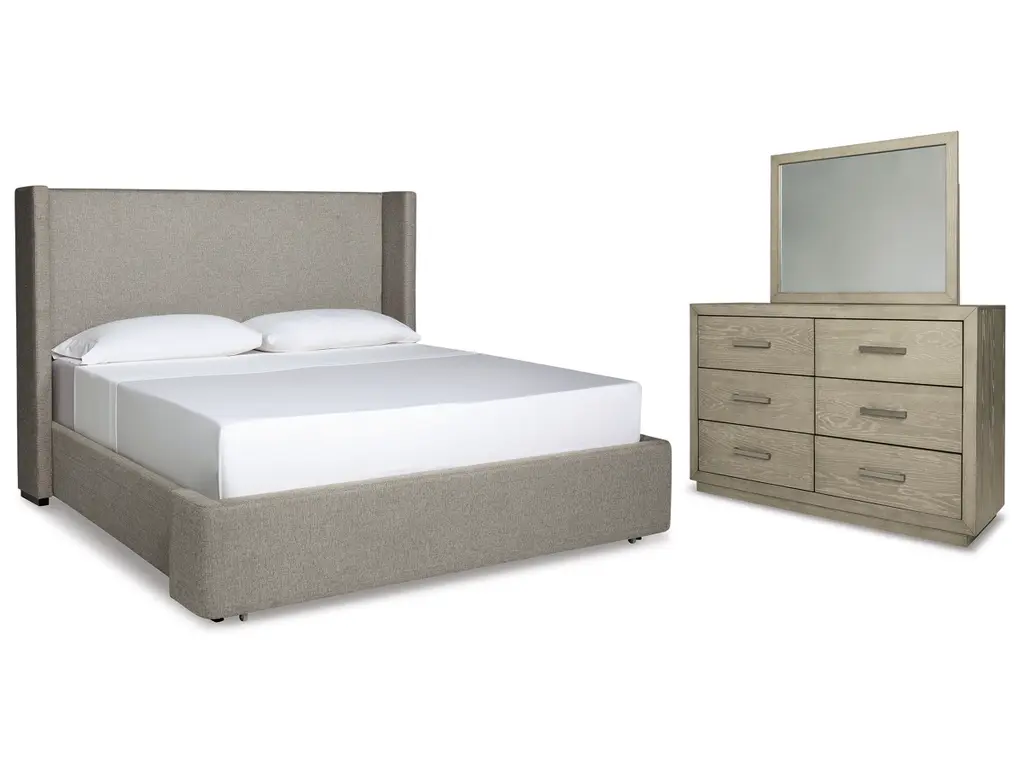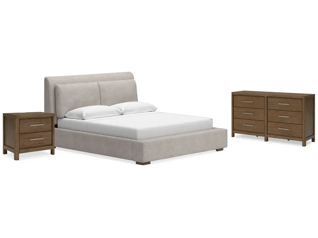 Cabalynn California King Upholstered Bed With Mirrored Dresser And Nightstand