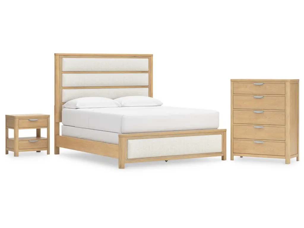 The Cabalynn bedroom package sits comfortably at the intersection of modern lodge and farmhouse aesthetics. Your warm and welcoming disposition is reflected in the charming architectural elements and light brown glazed finish. Even with its poise, the set remains practical, defining your bedroom with reliable function and style.