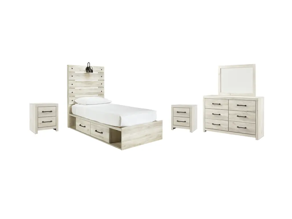 Cabalynn Queen Panel Bed With Storage With Mirrored Dresser And 2 Nightstands