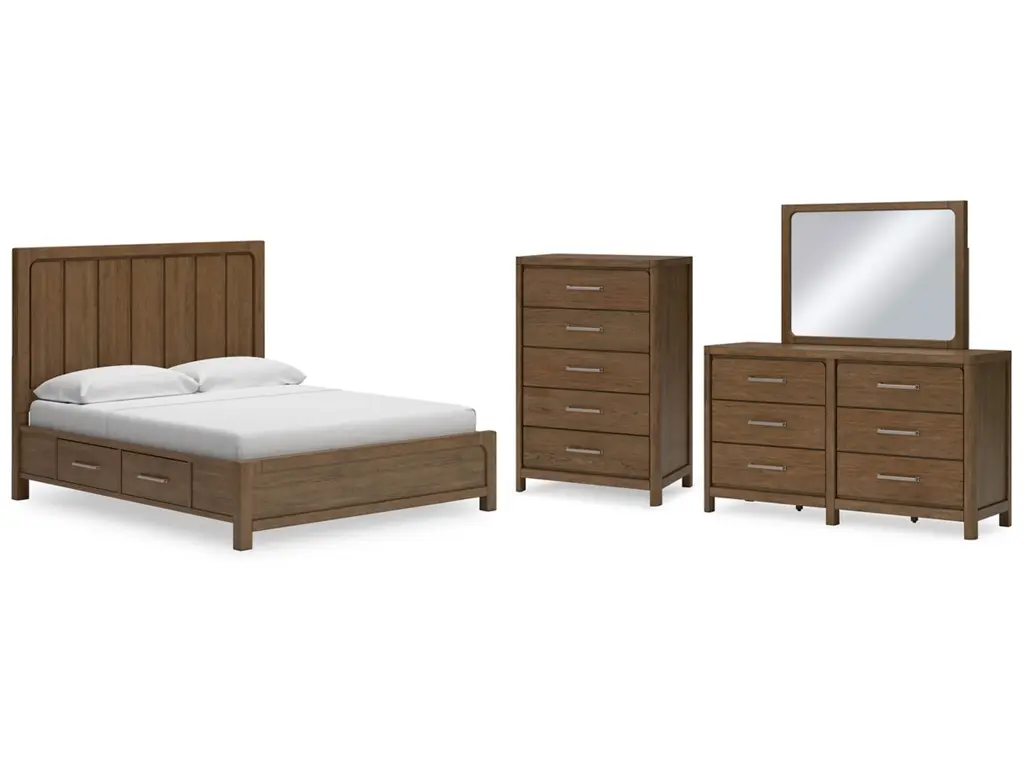 Cabalynn Queen Panel Bed With Storage With Mirrored Dresser And Nightstand