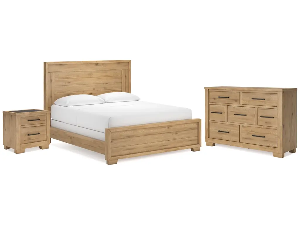 The Cabalynn bedroom sits comfortably at the intersection of modern lodge and farmhouse aesthetics. Your warm and welcoming disposition is reflected in the charming architectural elements and light brown glazed finish. Even with its poise, the set remains practical, defining your bedroom with reliable function and style.