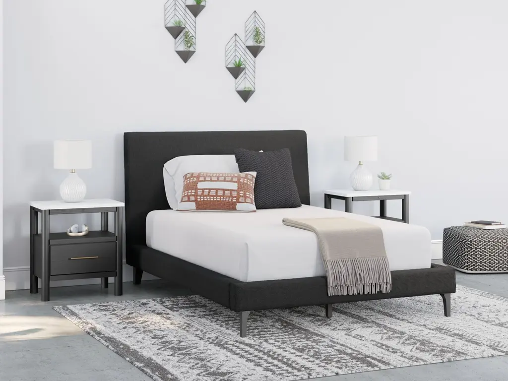 This full upholstered bed reflects your sophisticated approach to boho style. Crafted with both form and function in mind, its black boucle fabric brings trend-right beauty to bedtime. The versatile design suits all-neutral spaces or blends with your favorite pops of color. It’s inviting, yet posh. Luxe, yet laid-back. With this bed, your free-spirited vibe meets modern design.