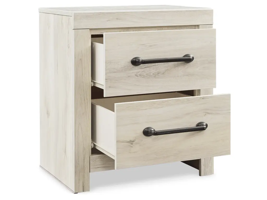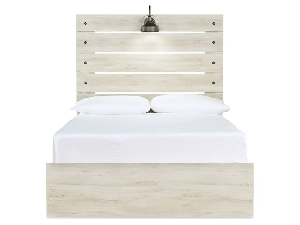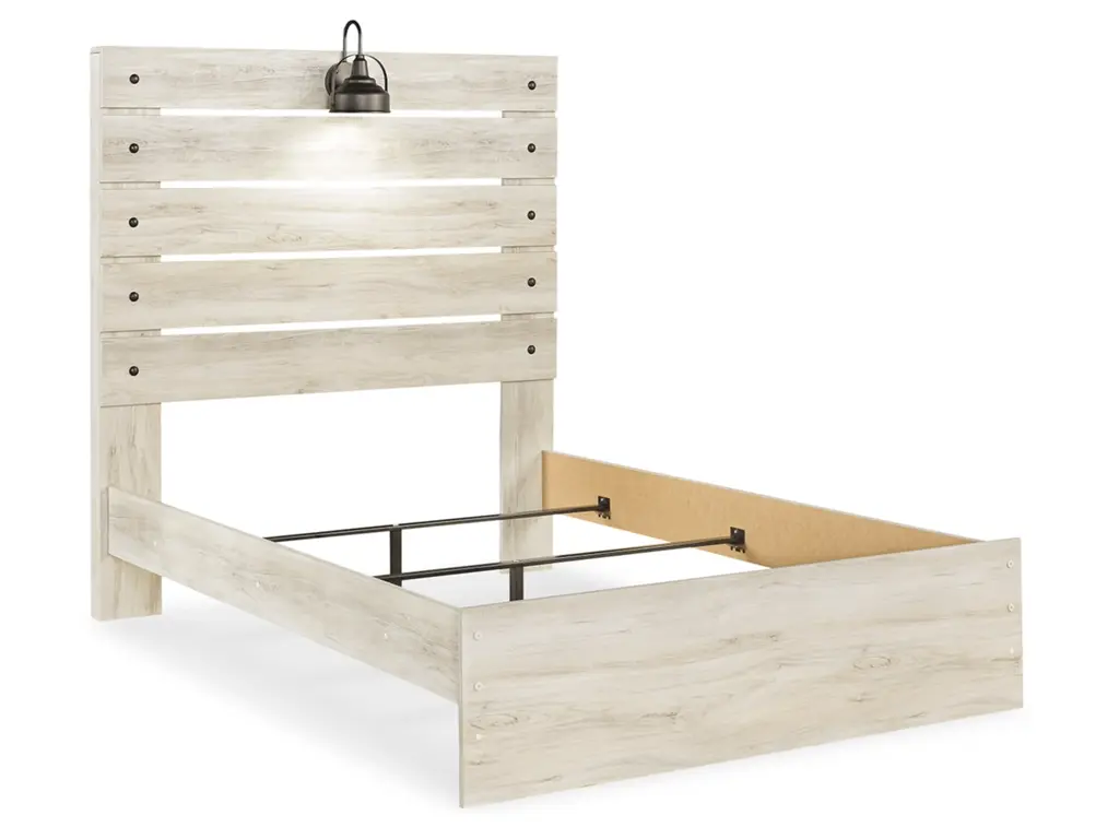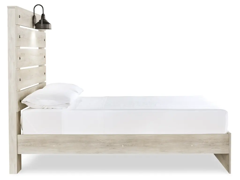 What a delightful take on rustic industrial style. Whether modern loft or modern farmhouse, the Cambeck bedroom package makes itself at home. The wispy whitewash palette enhances without covering the grain for that weathered look you crave. You’re sure to find the retro-chic light sconce and USB plug-ins such a bright idea.