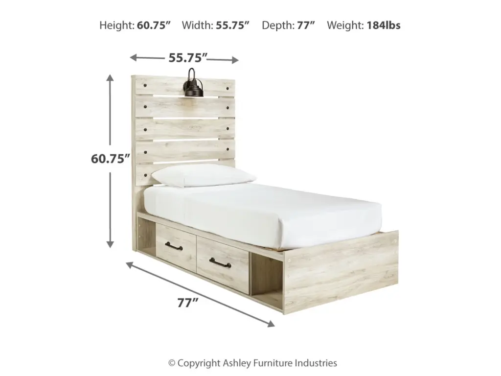 Cambeck Twin Panel Bed With 2 Storage Drawers And 2 Cubbies
